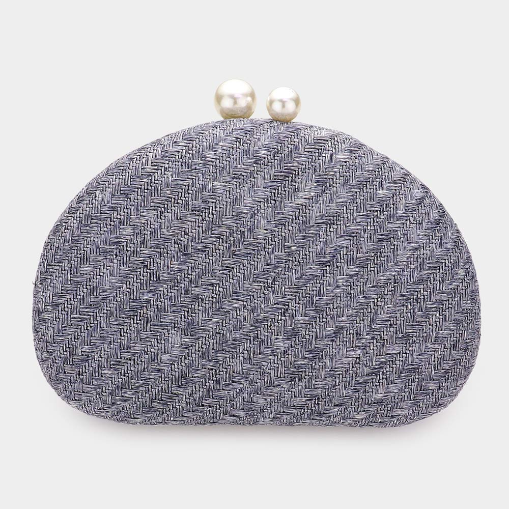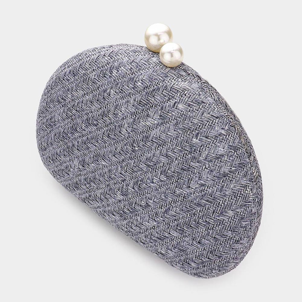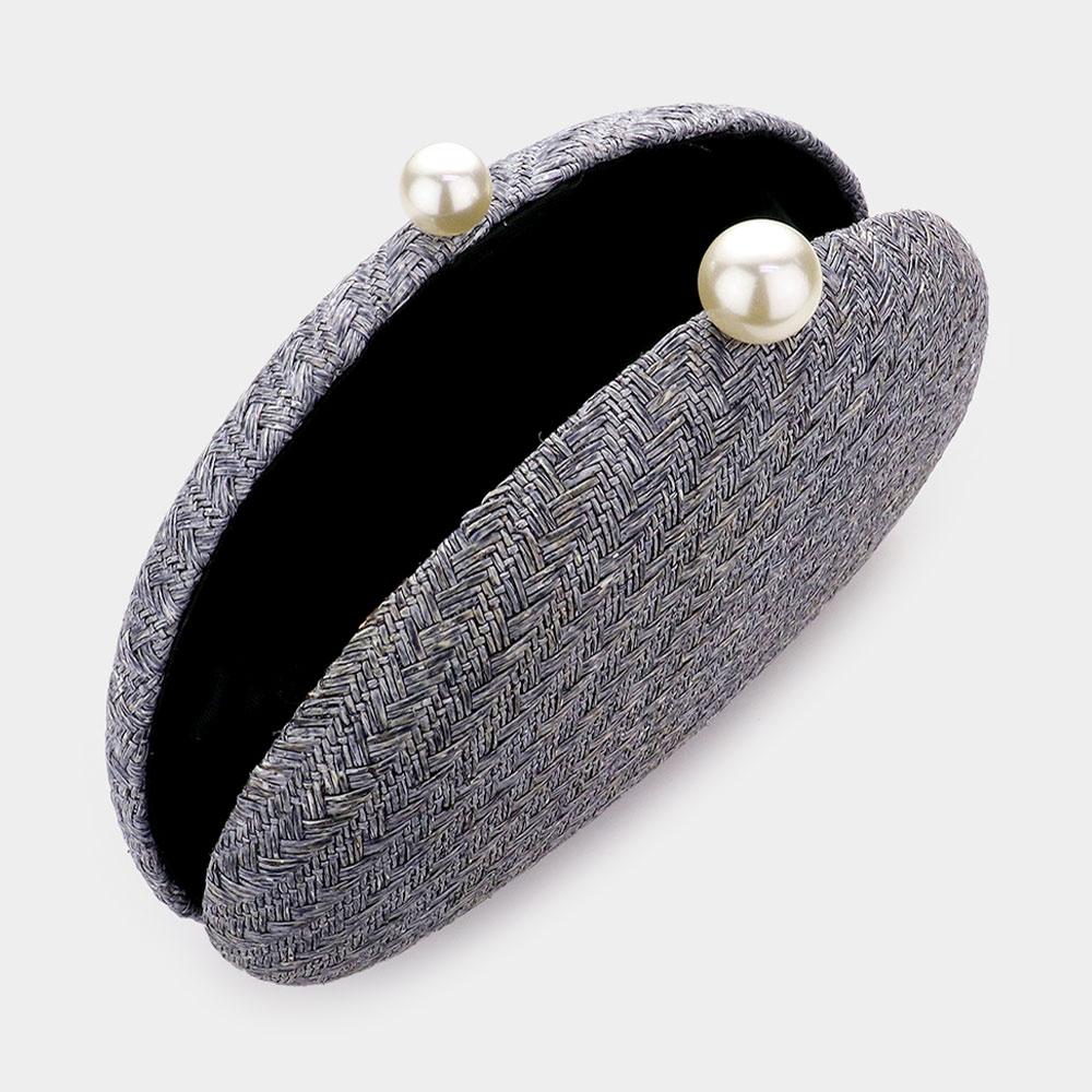 Pearl Pointed Woven Raffia Clutch / Crossbody Bag
