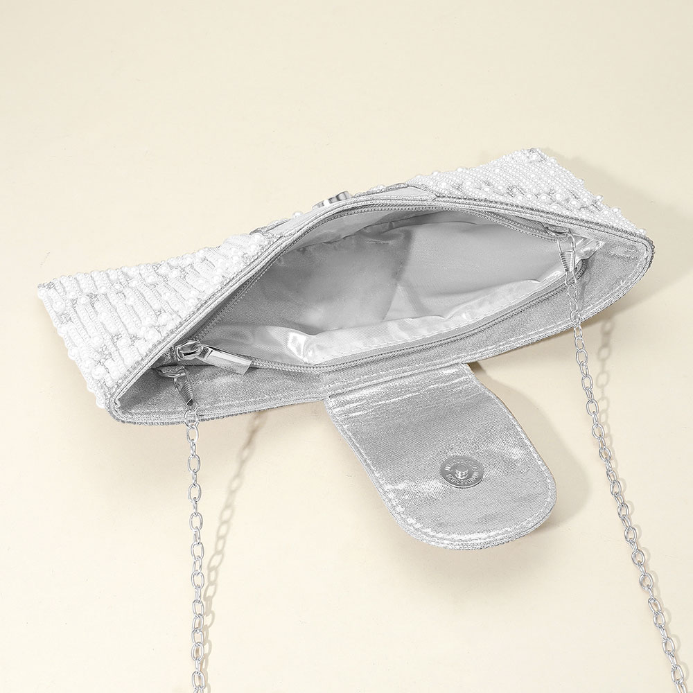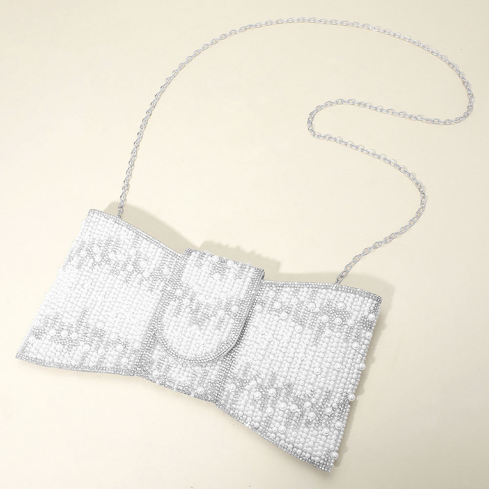 Pearl Rhinestone Embellished Bow Shaped Clutch Bag / Crossbody Bag