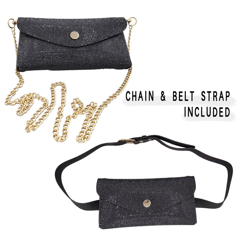 Rhinestone Pave Wallet on Chain Clutch / Fanny Pack / Belt / Crossbody Bag