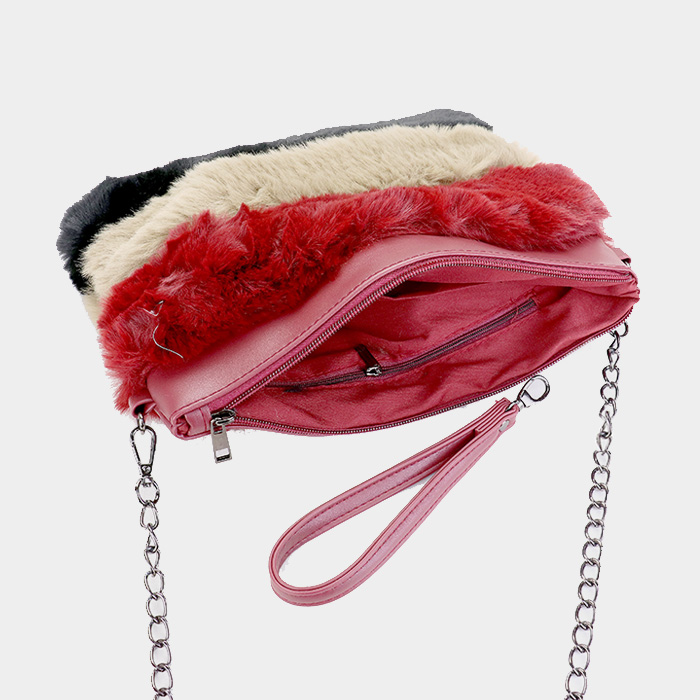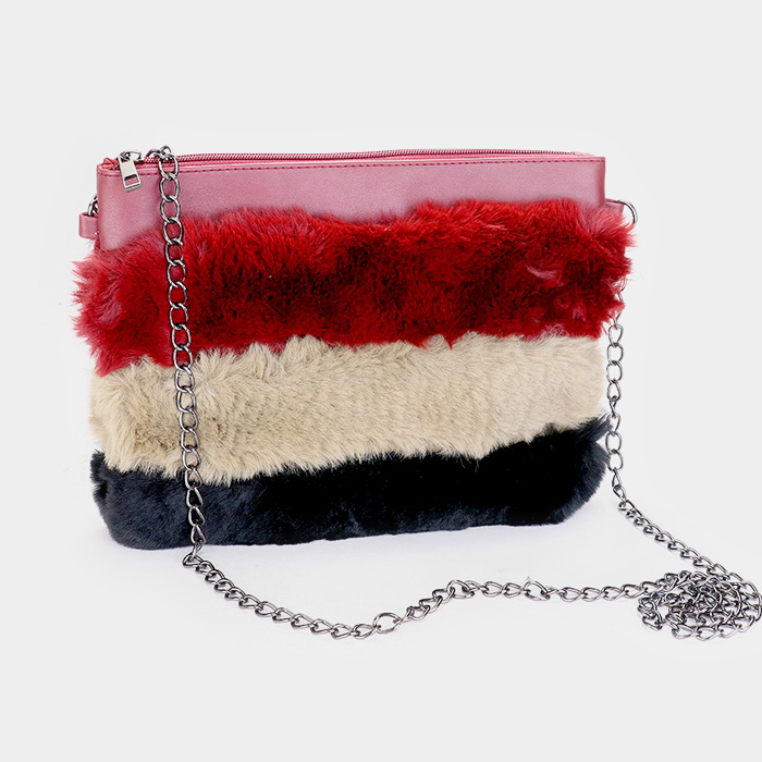 Three Tone Faux Fur Rectangle Crossbody Bag