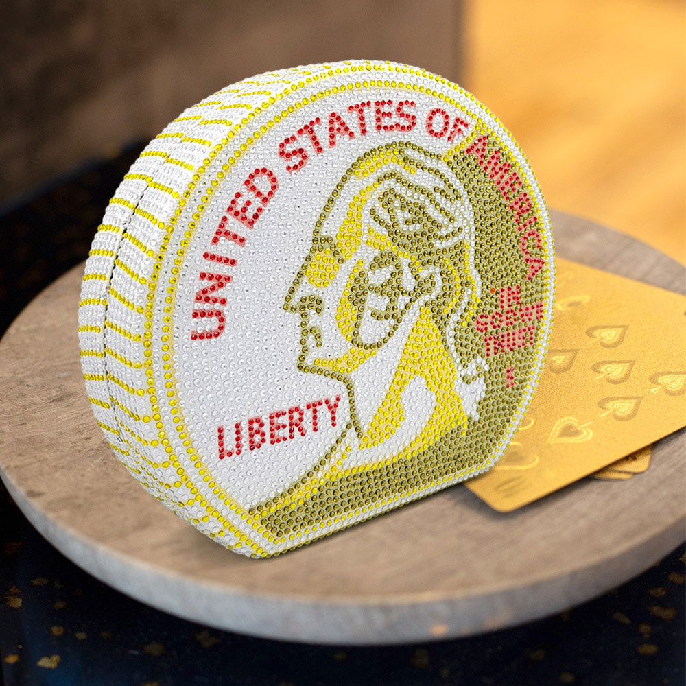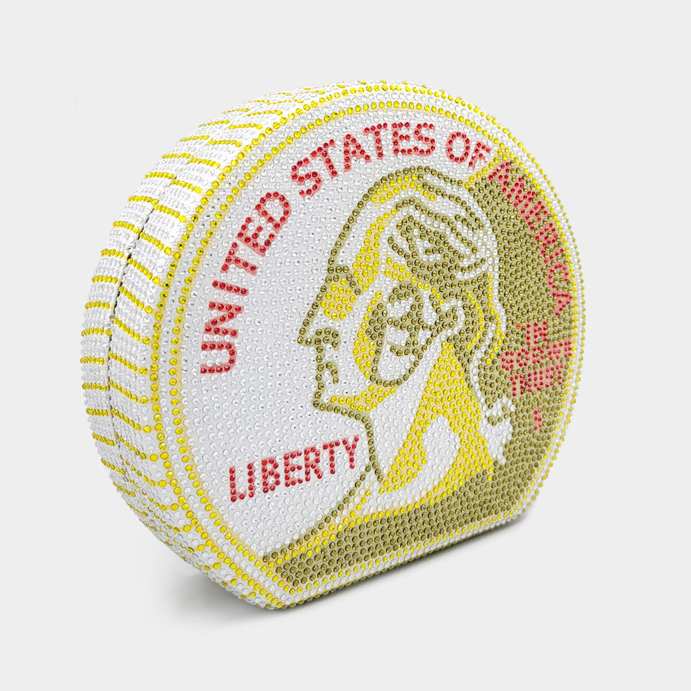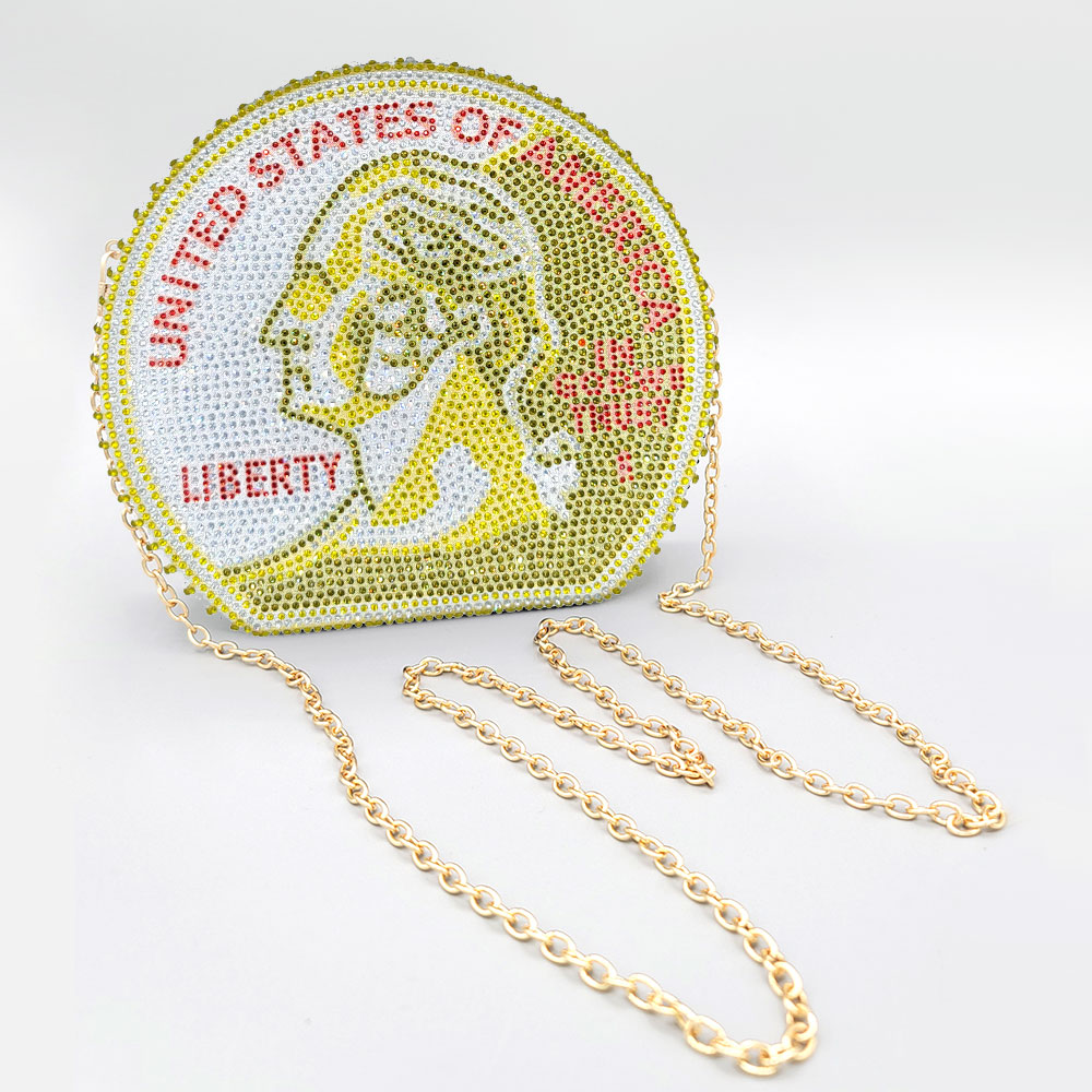 USA Quarter Coin Rhinestone Clutch Bag