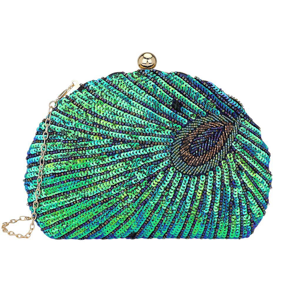 • Elevate your style with this peacock inspired sequin clutch featuring radiant beadwork, shimmering sequins, and a detachable chain strap. Perfect for evening events, weddings, and parties, this elegant purse adds bold sophistication to any outfit.