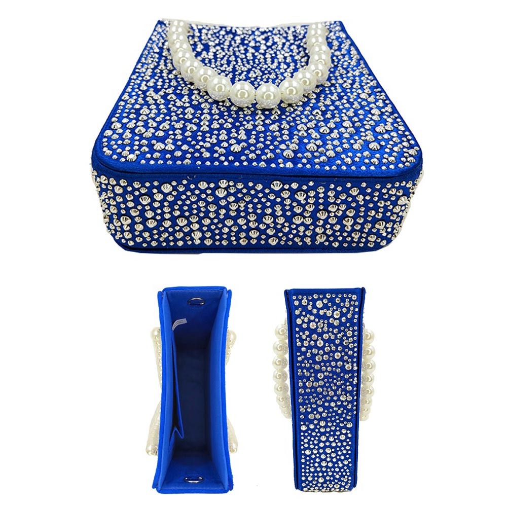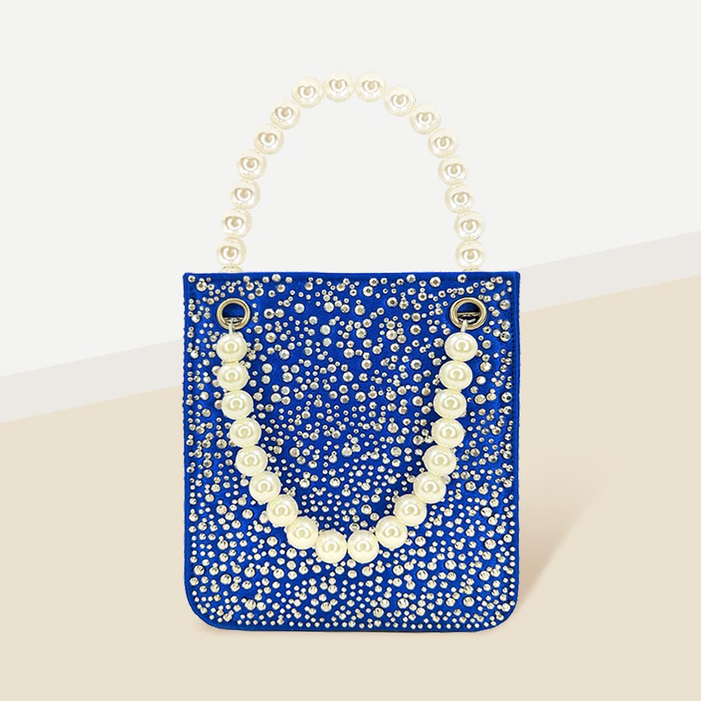 Bling Rectangle Pearl Handle Evening Tote / Crossbody Bag