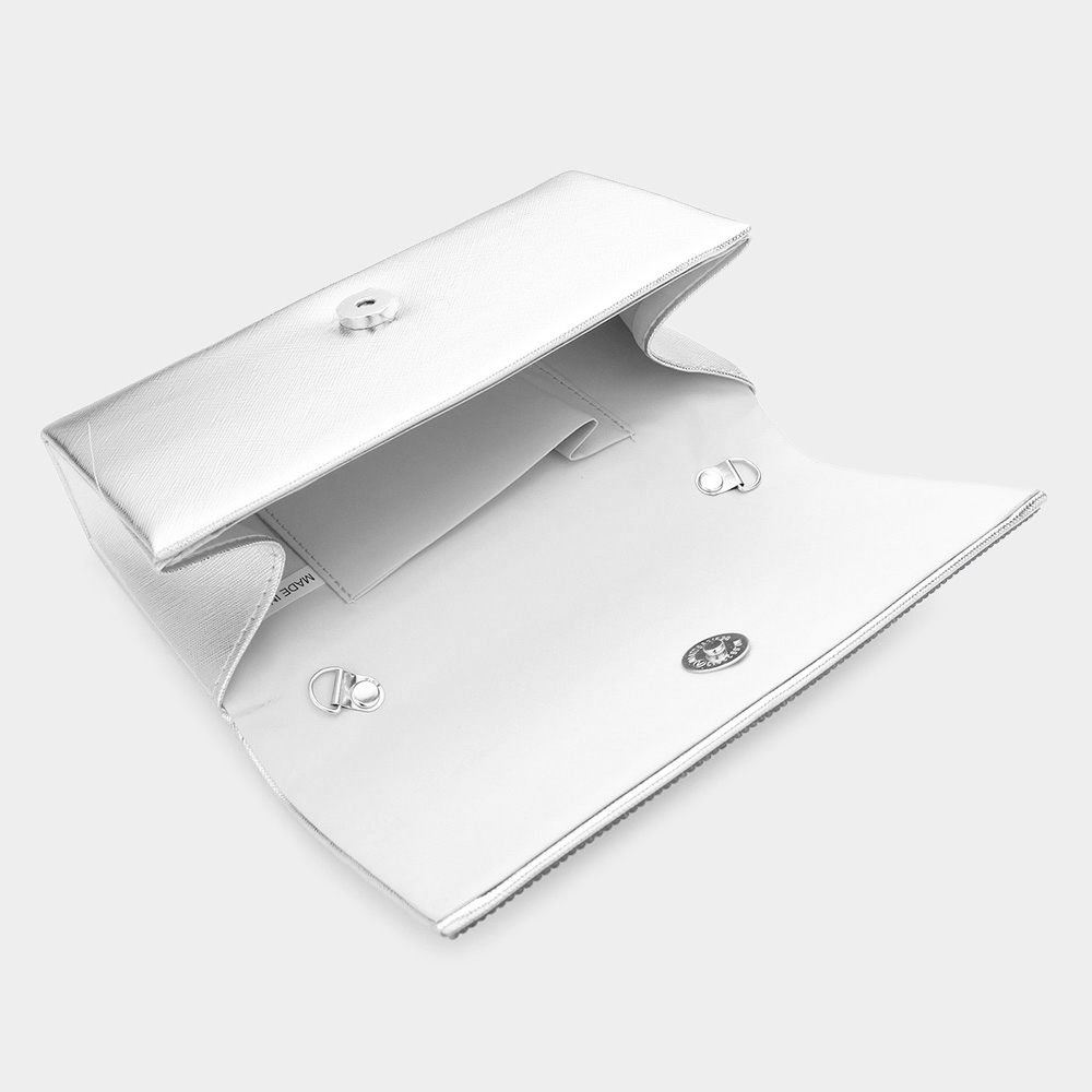 Details • Bag Size : 8" X 4" X 2.3" • Chain Strap Size : 48" L, Detachable • One Inside Slip Pocket • Magnetic Closure • Shine at every occasion with this aqua crystal clutch, designed with a sleek silhouette and shimmering detail. Perfect for weddings, galas, and nights out, this glamorous statement bag adds elegance and sparkle to any outfit.
