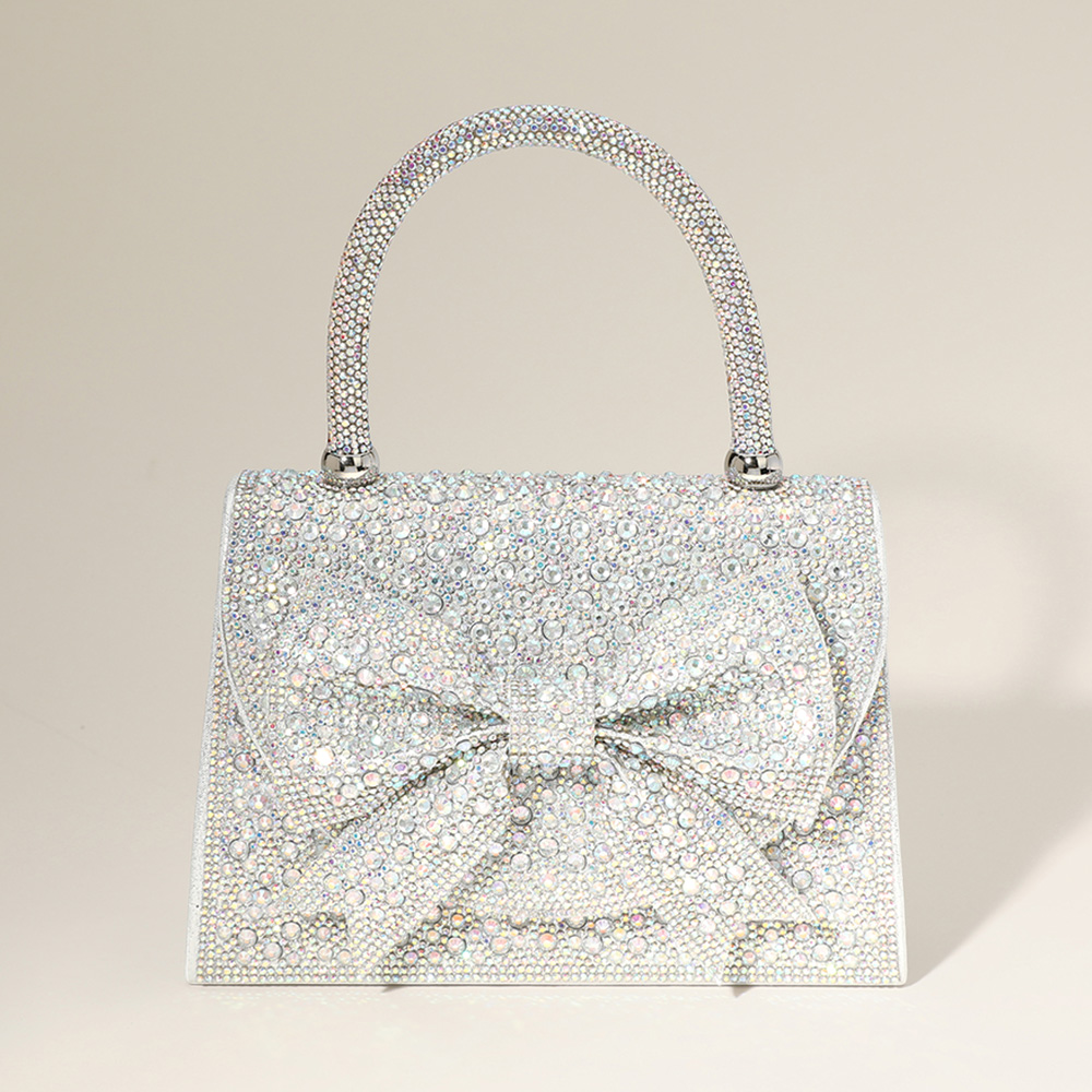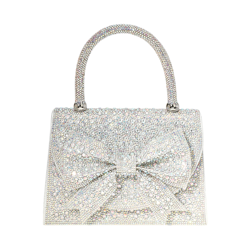 Bling Studded Bow Accented Top Handle Evening Hand Bag / Crossbody Bag