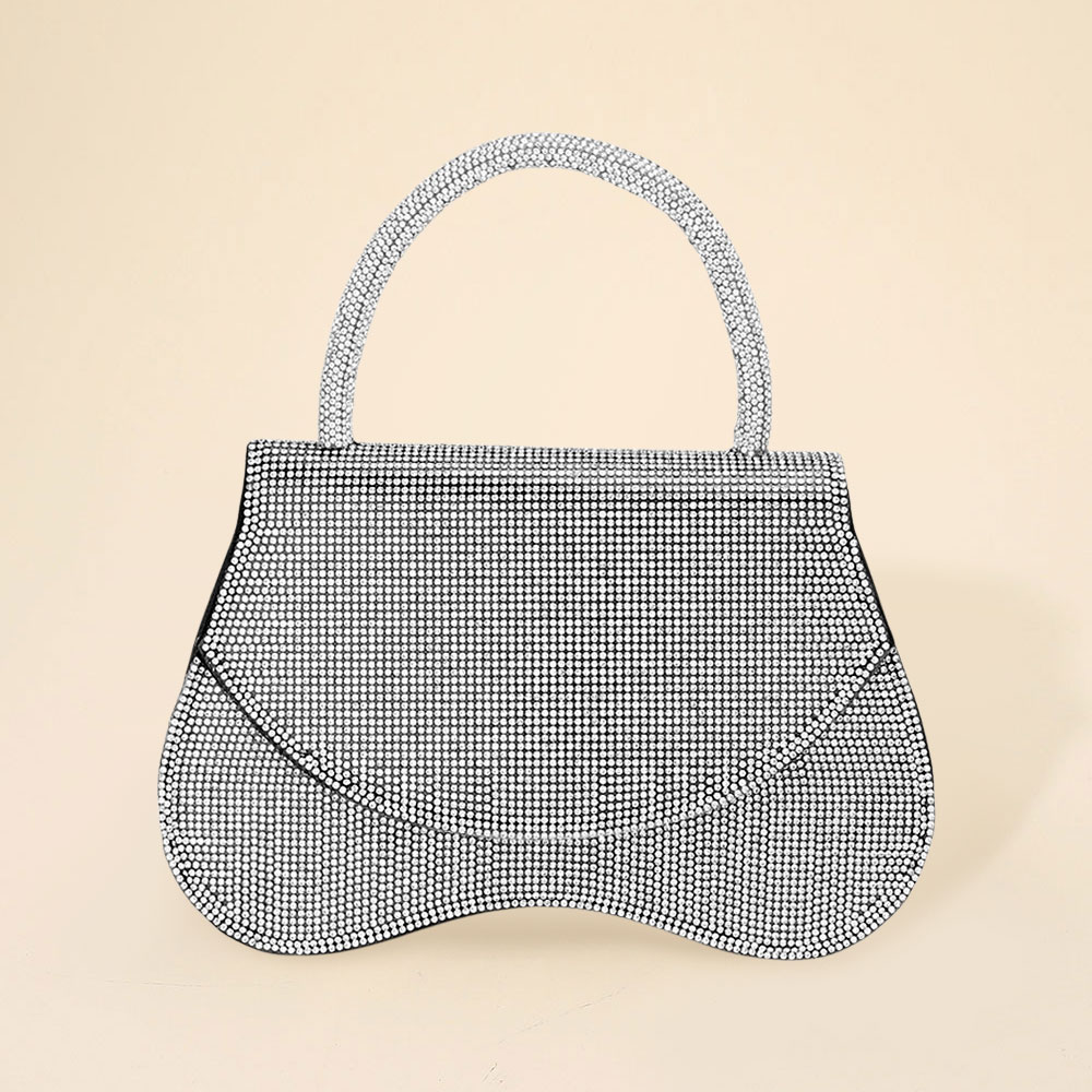 Details • Size : 9" X 5.5" X 2.3" • Top Handle Size : 3.5" L • Strap Size : 46" L / Detachable • Material : 60% Polyurethane, 20% Cotton, 20% Iron • Magnetic Closure • One Inside Slip Pocket • Discover a refined rhinestone handle bag featuring a sculpted flap design, spacious interior, and detachable chain strap. Perfect for evenings and special events, this statement accessory offers versatile styling and timeless sophistication in a compact form.