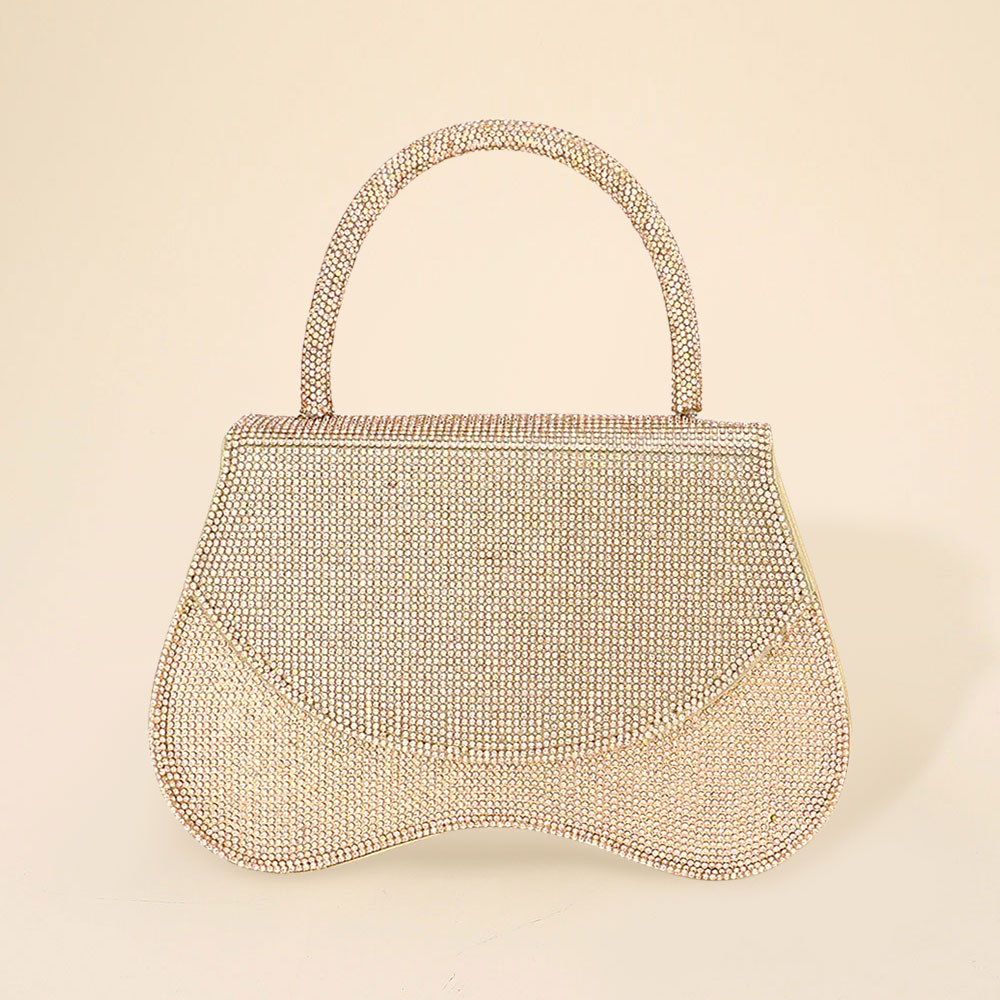 • Discover a refined rhinestone handle bag featuring a sculpted flap design, spacious interior, and detachable chain strap. Perfect for evenings and special events, this statement accessory offers versatile styling and timeless sophistication in a compact form.