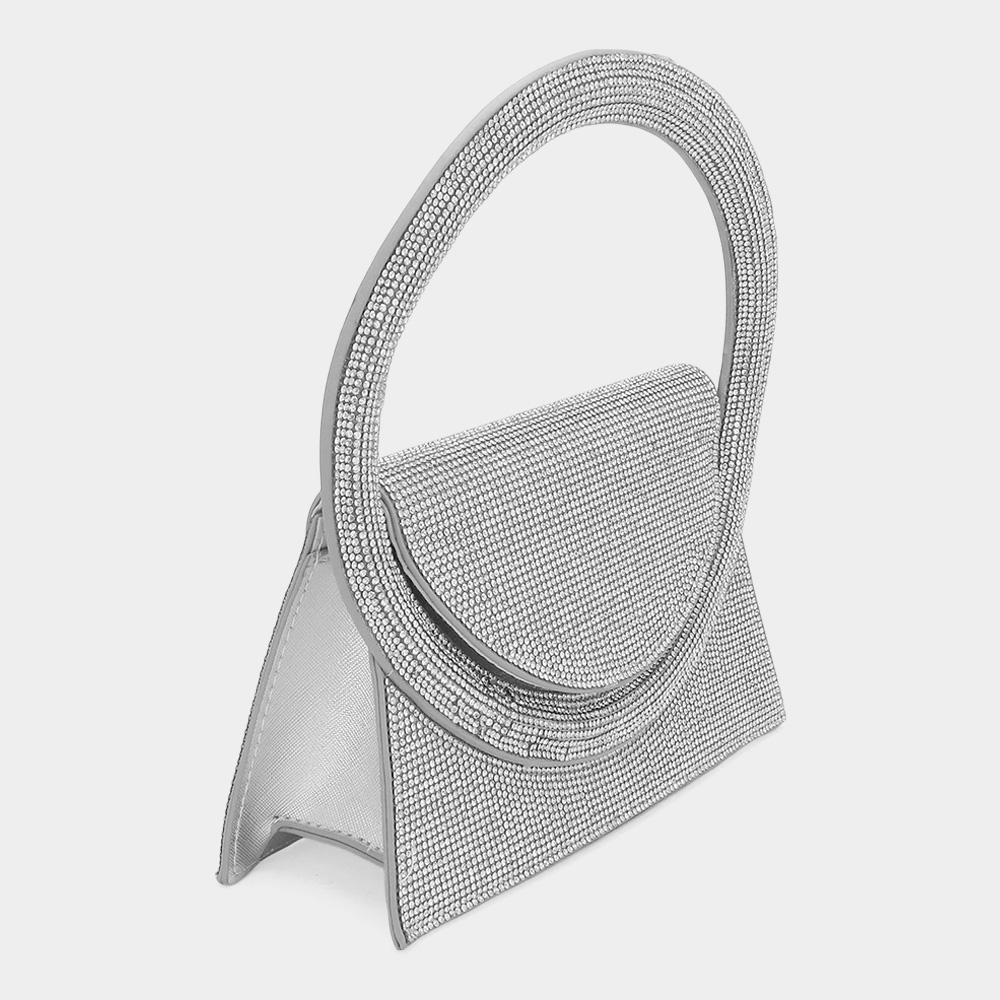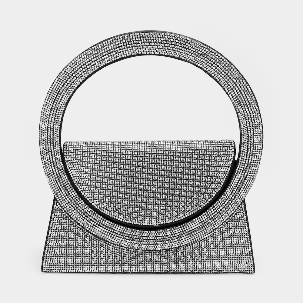 Bling Studded Oversized Round Top Handle Mini Evening Bag / Crossbody Bag