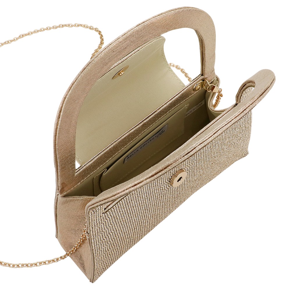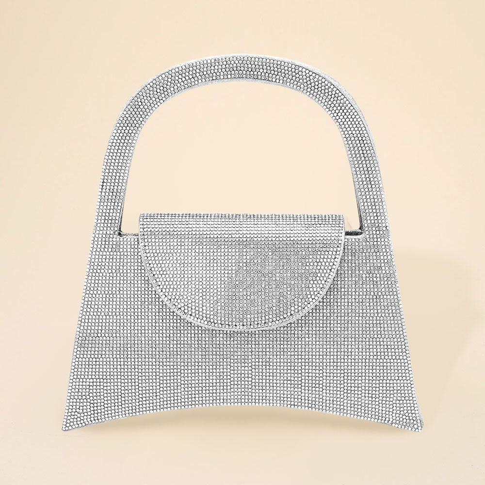 • Discover a refined evening bag featuring a sculpted handle, sparkling exterior, secure magnetic closure, and organized interior pocket. Designed for special occasions, this statement accessory adds sophistication and functional style to any elevated look.
