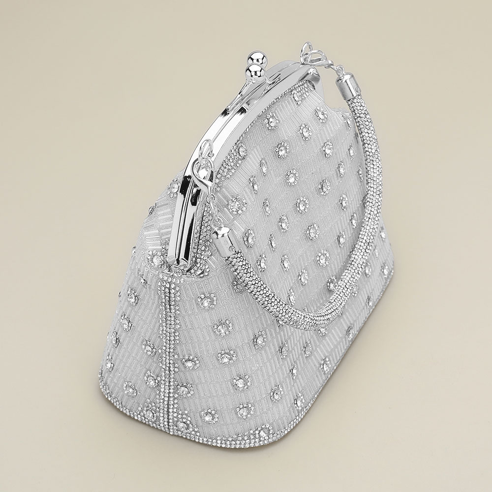 Elegant Rhinestone Embellished Top Handle Evening Crossbody Bag
