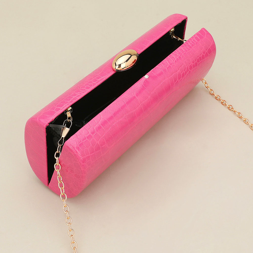 • Elevate your evening look with this textured chain clutch bag featuring a sleek structured silhouette and elegant clasp closure. Designed to carry essentials in style, it transitions effortlessly from special events to nights out, offering a chic accessory perfect for dressing up any outfit or gifting.