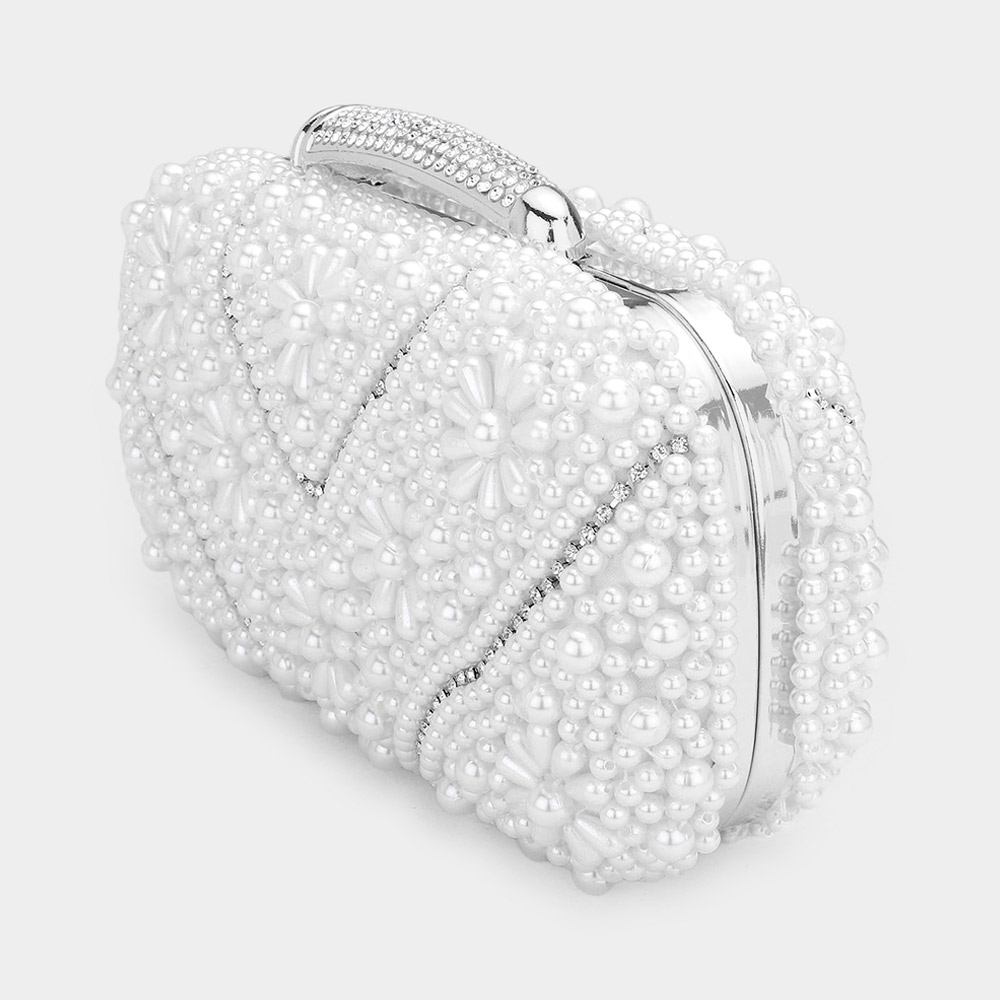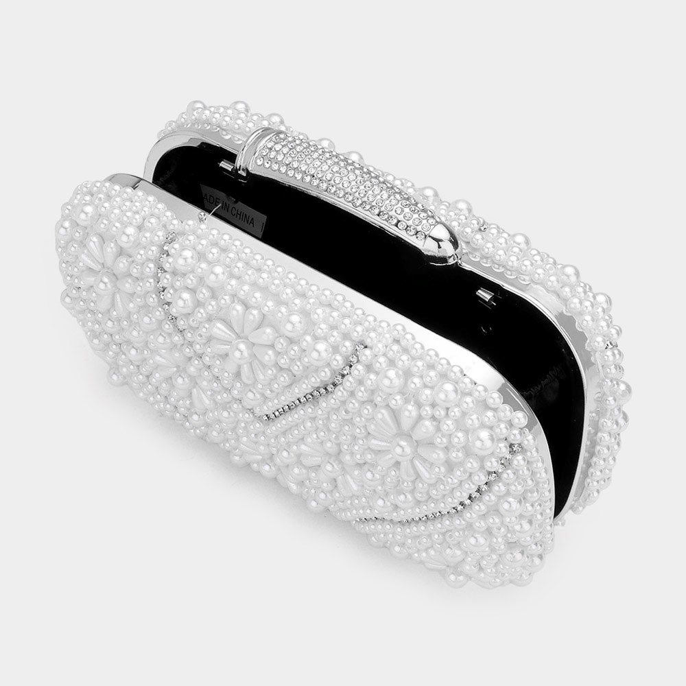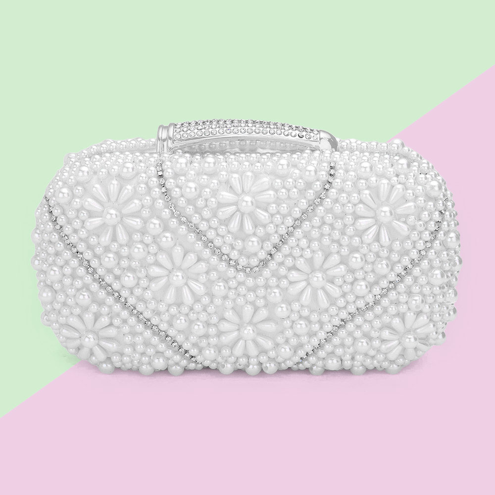 Details • Bag Size : 7.5" X 2.25" X 4" • Chain Strap Size : 48" L, Detachable • No Inside Pocket • Clasp Closure • Chic beaded clutch featuring a detailed floral design and structured shape. Ideal for evening events, weddings, or parties, this elegant bag adds a delicate, feminine accent to any sophisticated ensemble.