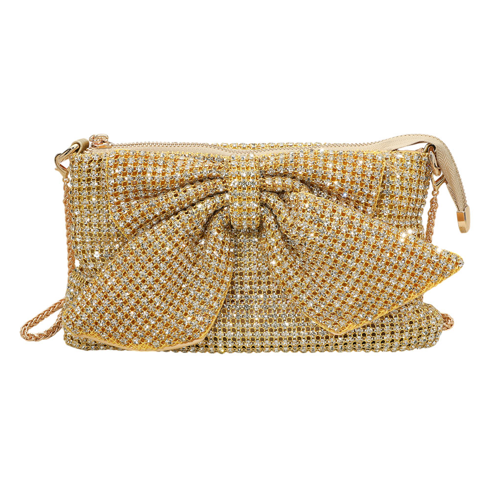 Mesh Bling Rhinestone Bow Accent Evening Clutch Bag / Crossbody Bag