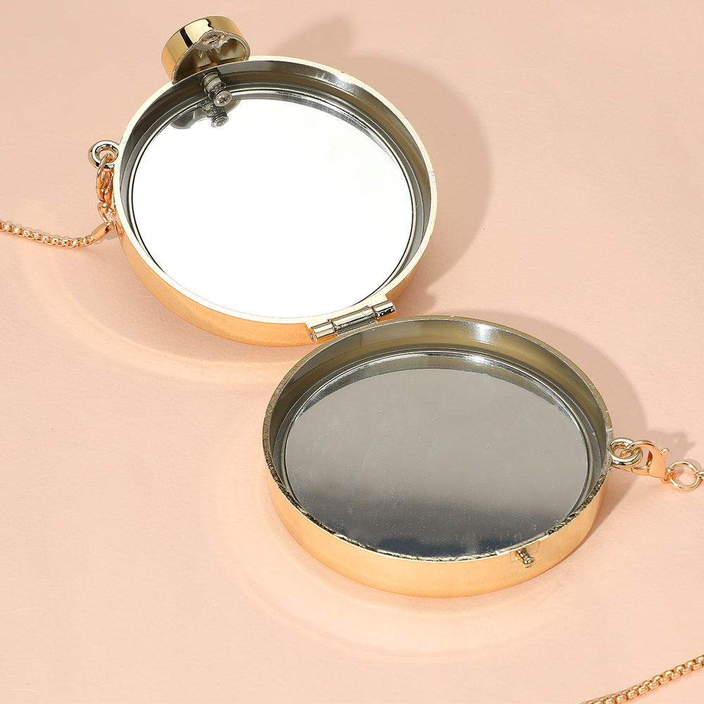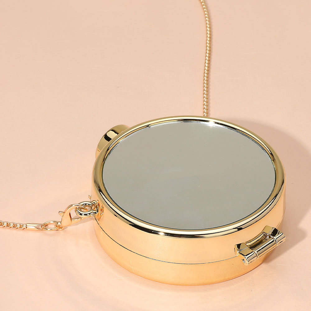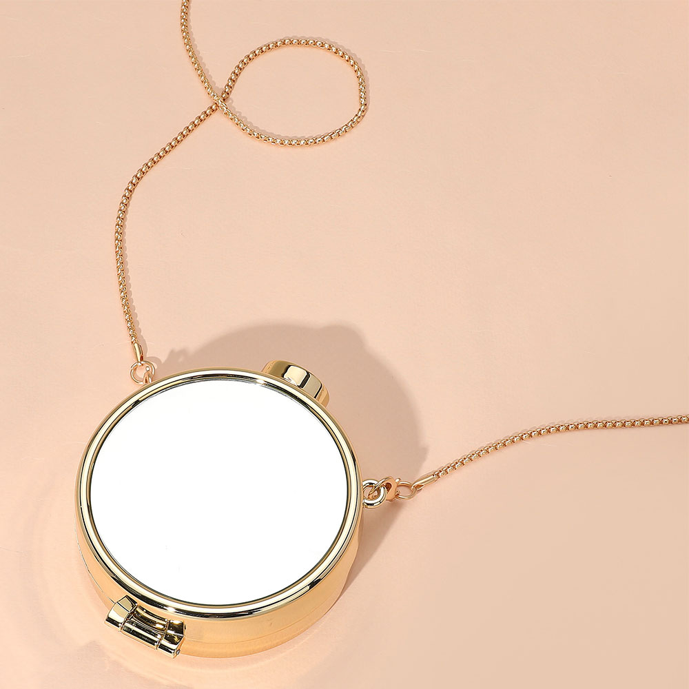 Metallic Round Compact Mirror Clutch Evening Bag Crossbody Bag