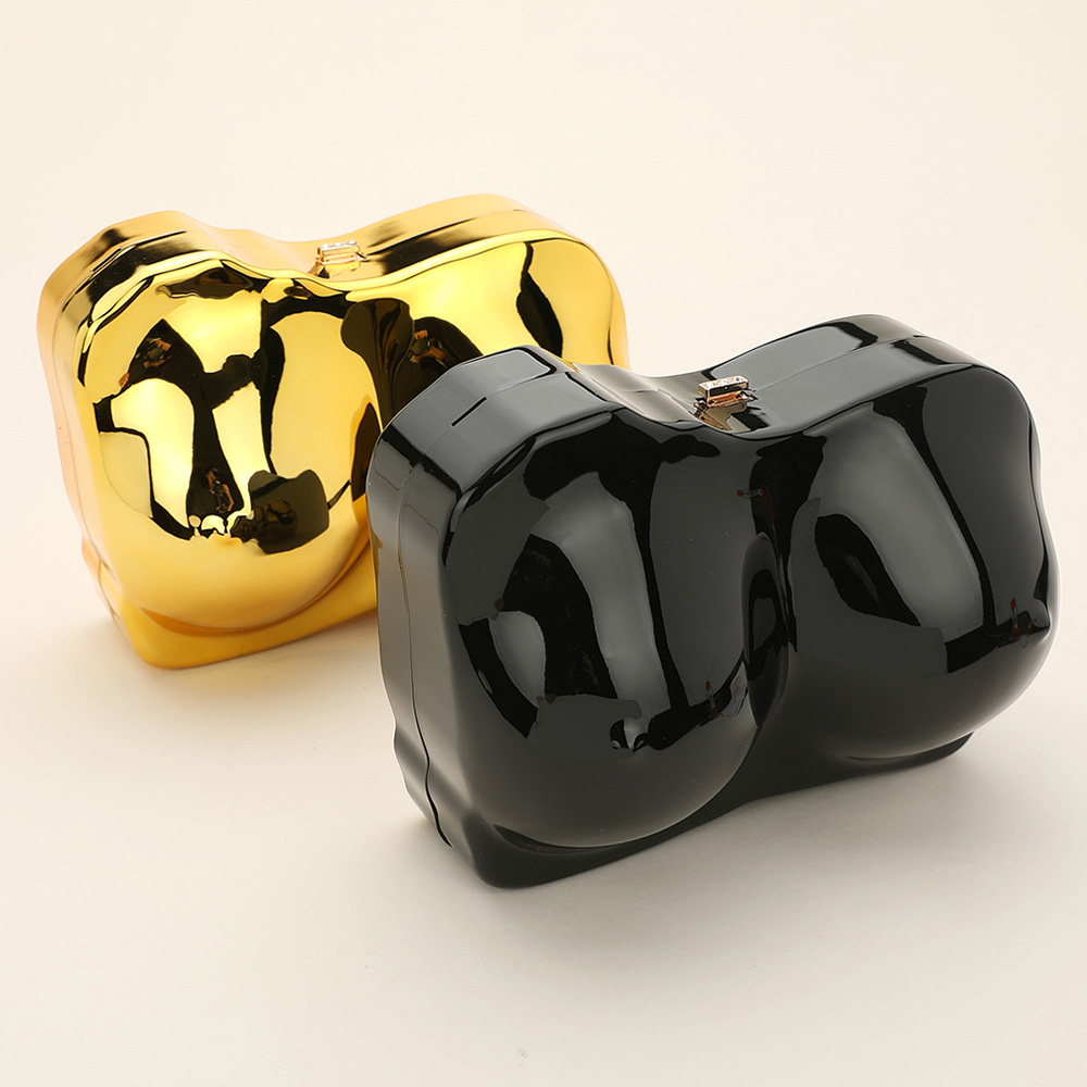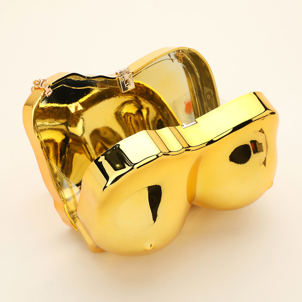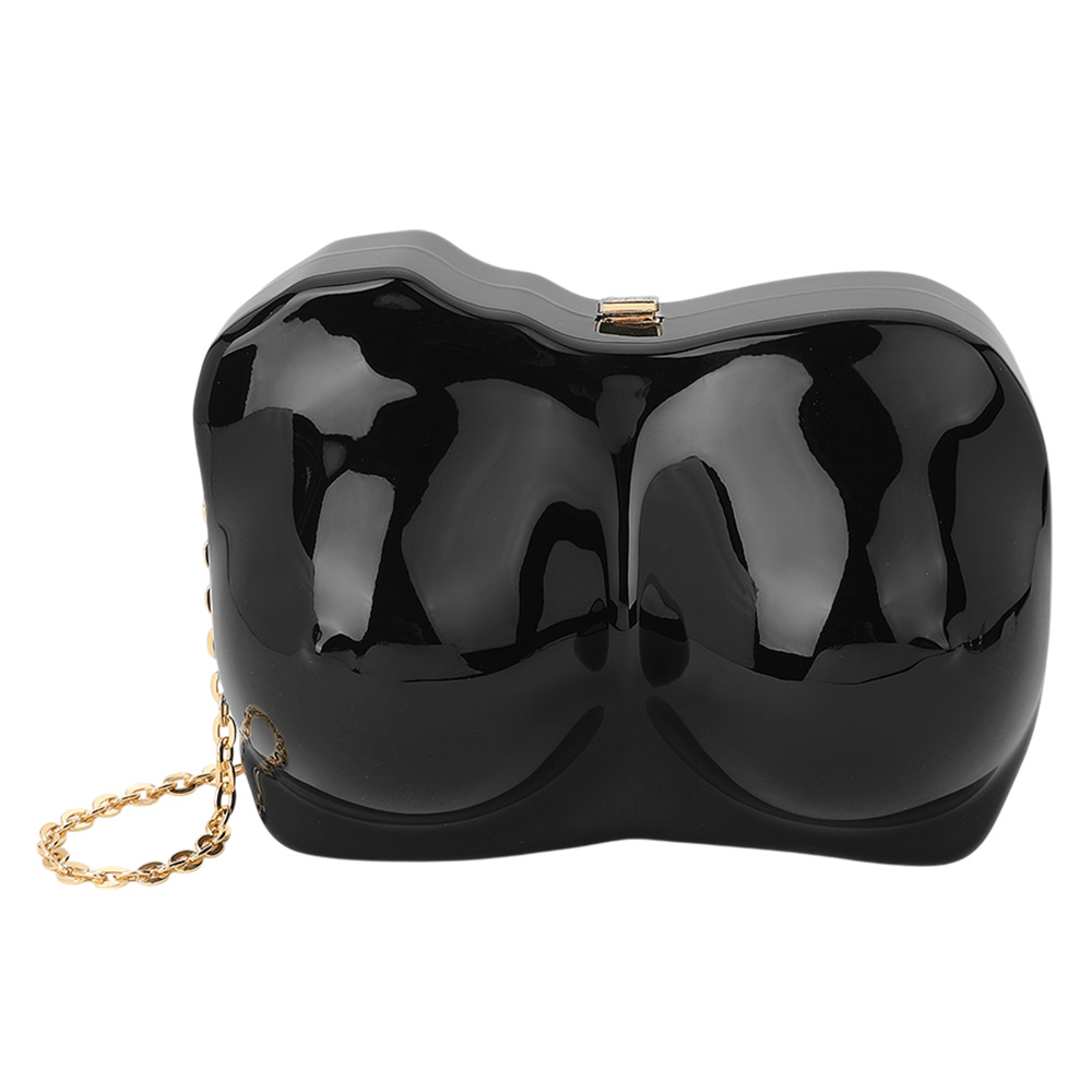 Details • Size : 8.25" X 5.7" X 2.25" • Strap Size : 46" L, Detachable • Clasp Closure • Stand out with this sculpted clutch bag featuring a glossy finish and detachable chain strap. A bold and fashion-forward accessory perfect for parties, nights out, or adding a daring edge to any outfit.
