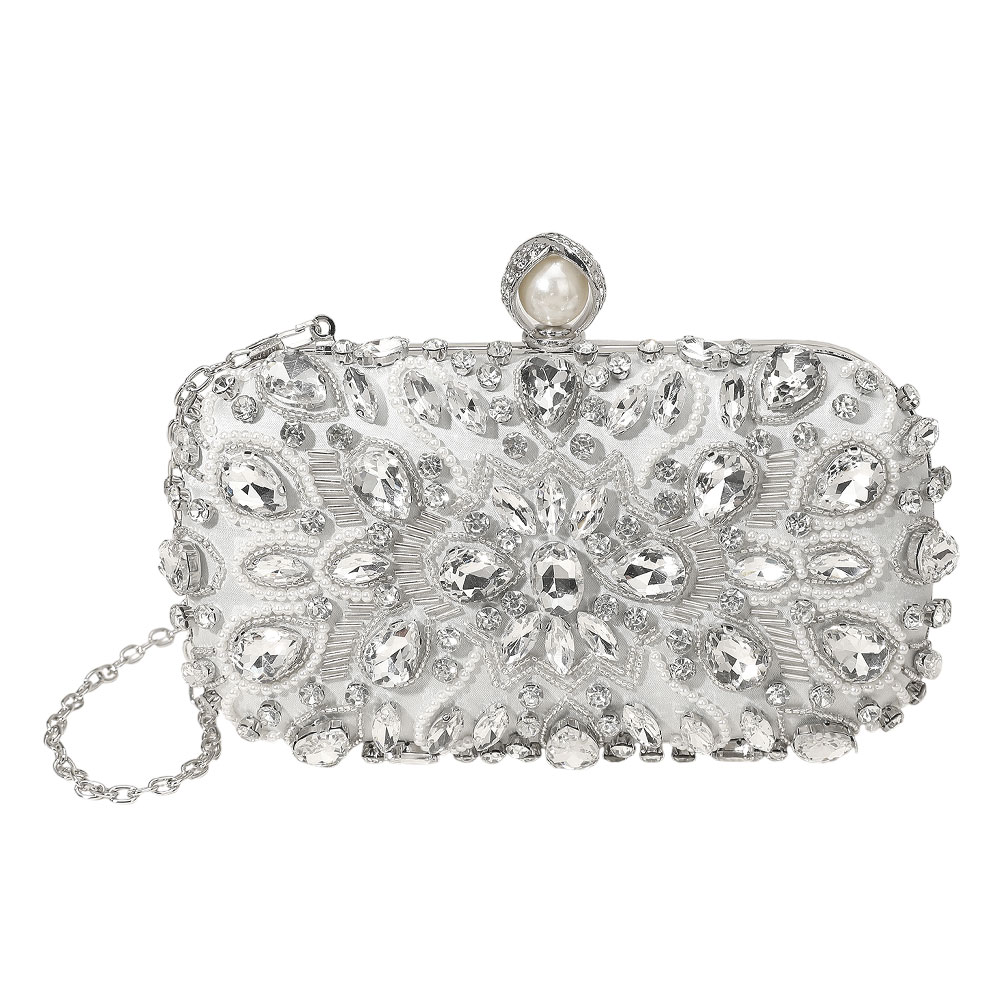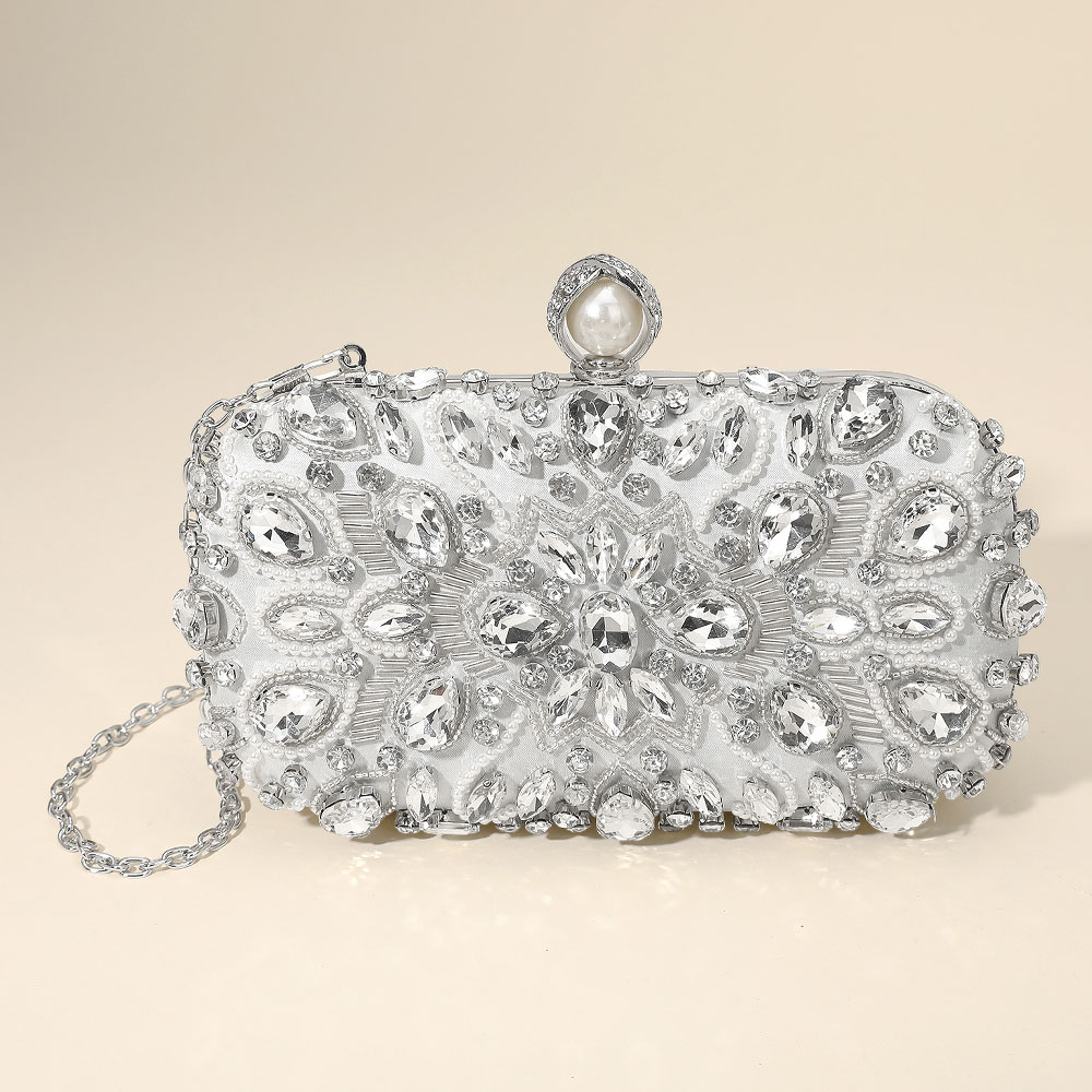 Pearl Clasp Crystal Stone Embellished Evening Crossbody Clutch Bag
