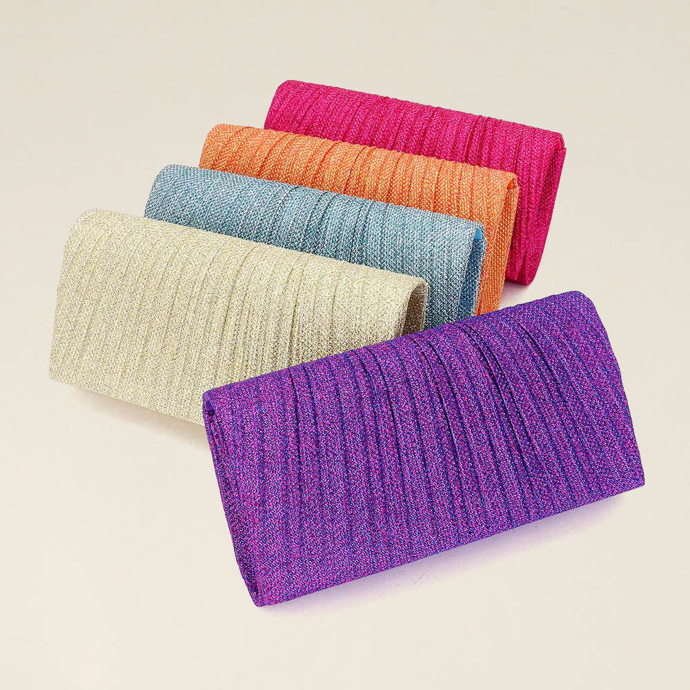 Pleated Shimmery Evening Clutch / Crossbody Bag
