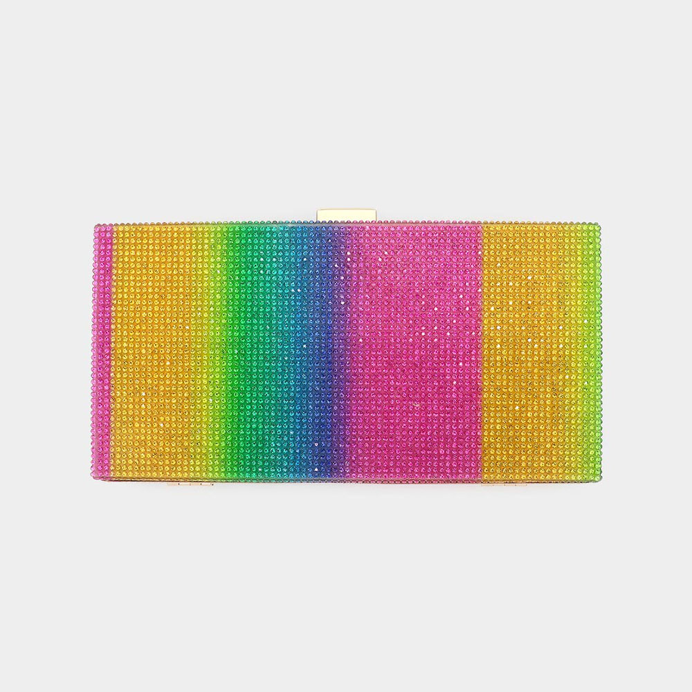 Rainbow Bling Rectangle Evening Tote / Clutch / Crossbody Bag