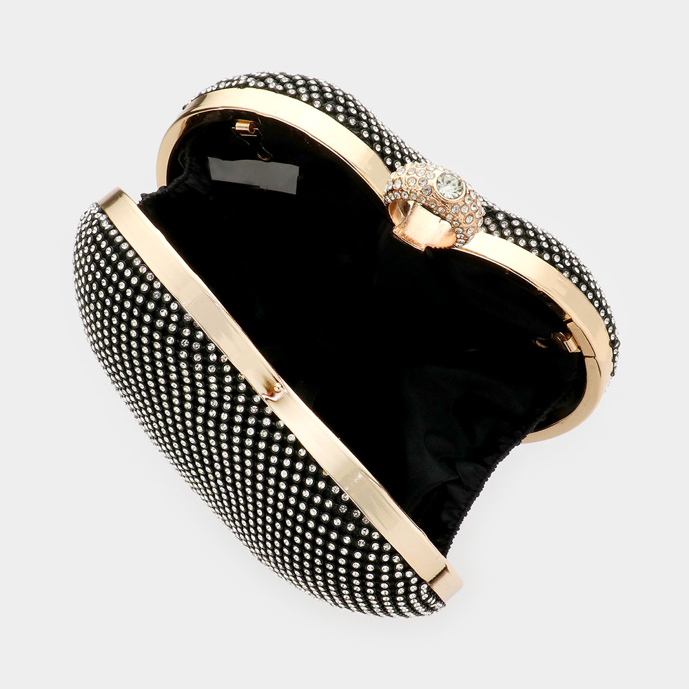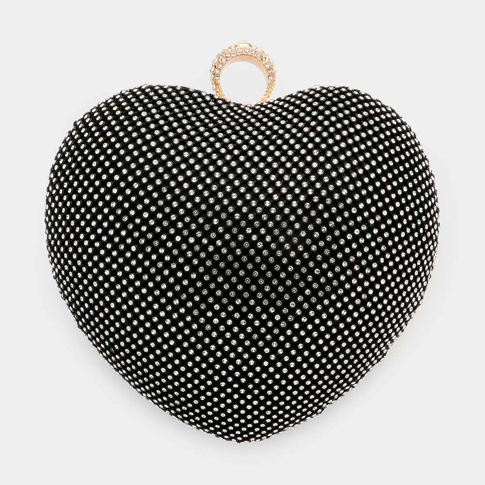 Details • Bag Size : 6.5" X 4" • Crossbody Chain Strap Size : 48" L, Detachable • No Inside Pocket • Clasp Closure • Add romance to your look with this dazzling heart-shaped clutch, designed with a sparkling textured finish and elegant closure. Perfect for parties, weddings, and evening outings, this chic purse brings a touch of glamour and charm to any special occasion.