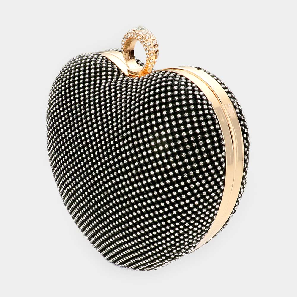 Rhinestone Embellished Heart Evening Clutch / Crossbody Bag