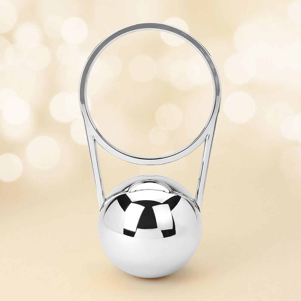 Details • Size : 5.5" X 10" X 4" • Magnetic Closure • This sculptural orb evening clutch showcases a sleek geometric design with a circular ring handle for a statement look. Its structured silhouette and polished finish bring a modern touch to formal and chic outfits, making it a standout accessory for special occasions.