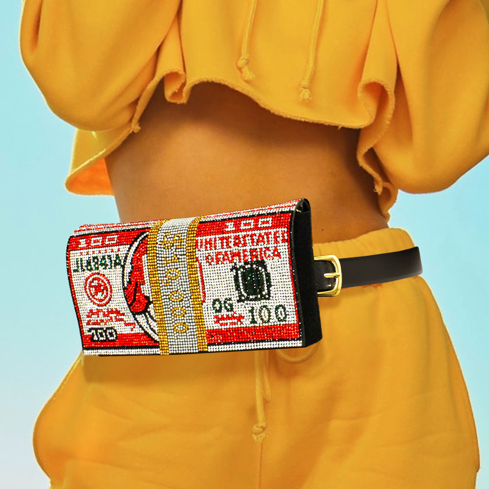 10K USD Money Rhinestone Fanny Pack / Belt / Clutch Bag
