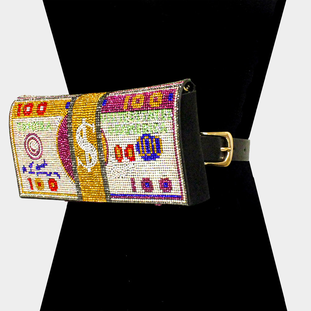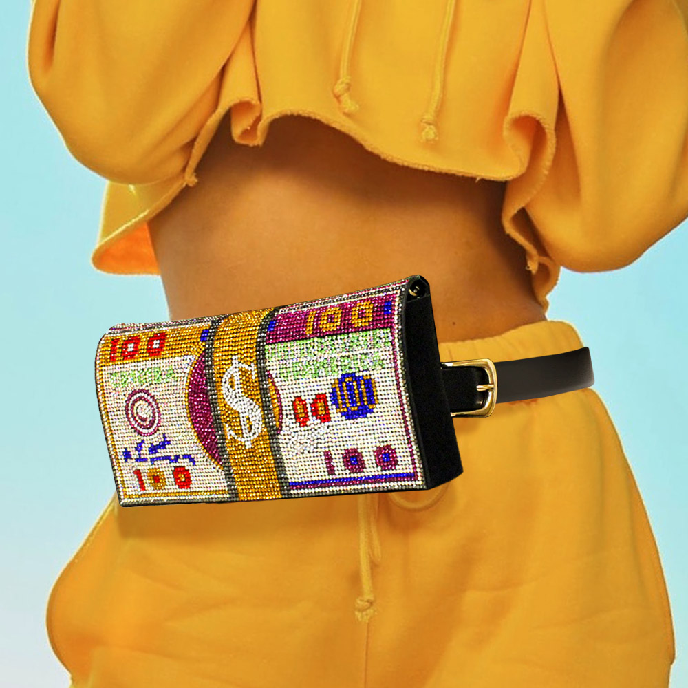 10K USD Money Rhinestone Fanny Pack / Belt / Clutch Bag
