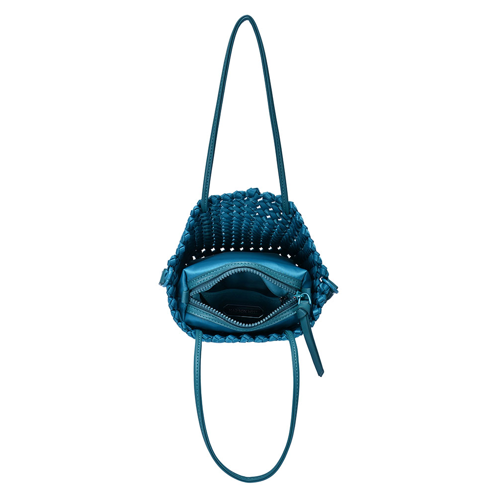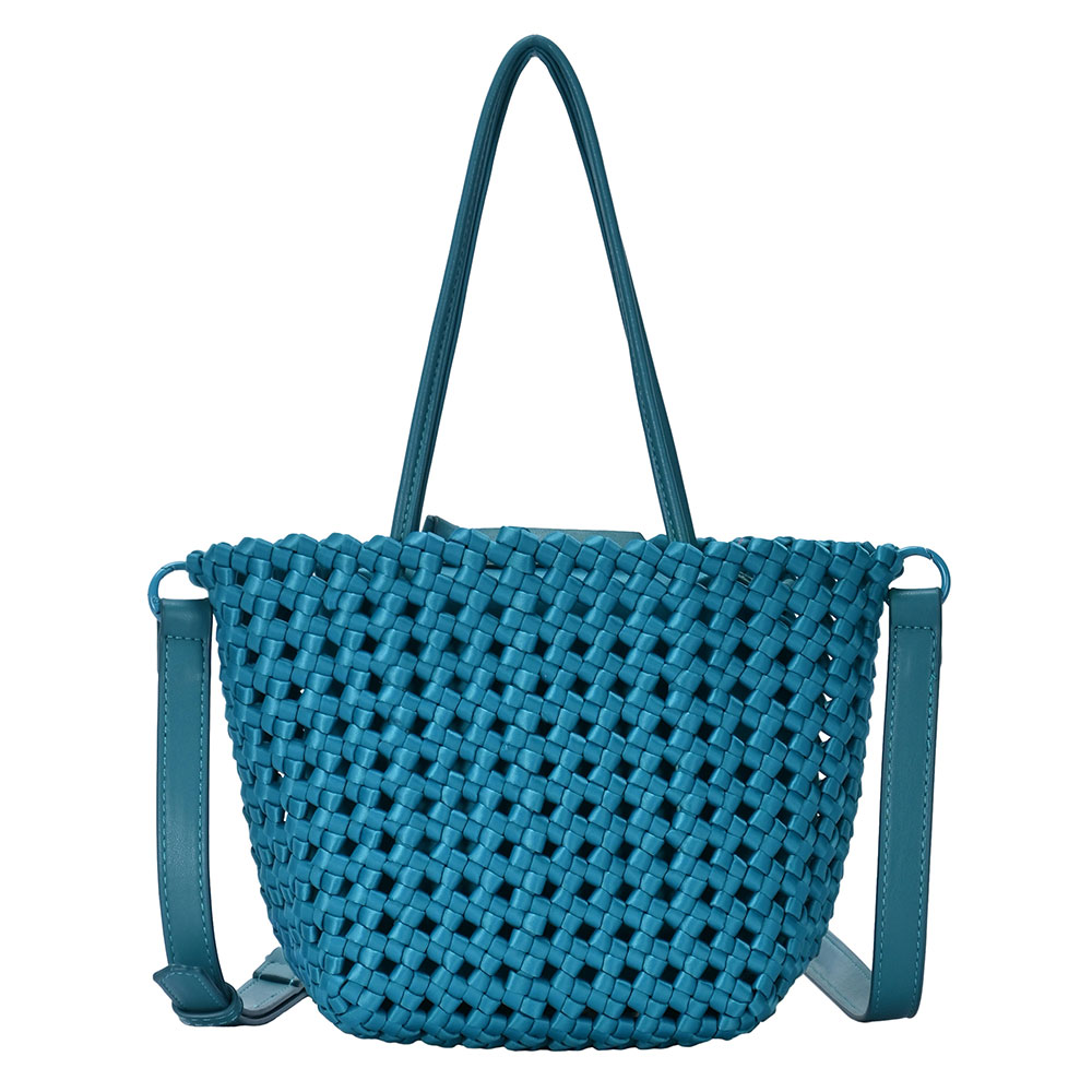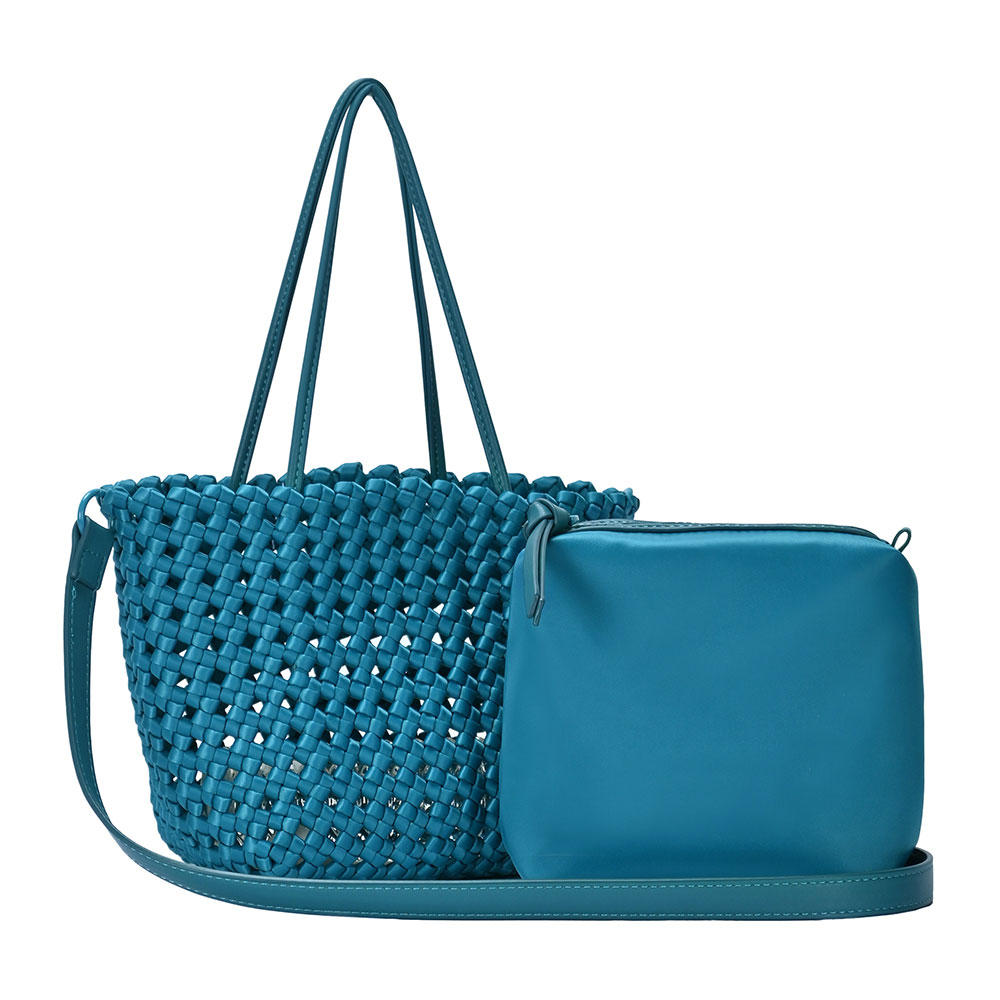 Details • Size : 10" X 7" X 4" • Top Handle Size : 7" L • Inside Pouch Size : 6" X 6" X 3" • Strap Size : 46" L / Detachable, Adjustable • One Inside Zipper Pocket • One Inside Slip Pocket • Zipper Closure • Material : Shell-Nylon, Lining-100%Polyester • Stylish woven tote bag featuring a detachable inner pouch and adjustable strap. Ideal for everyday, work, travel, or shopping. Combines elegance, versatility, and practical storage in one. • Handmade