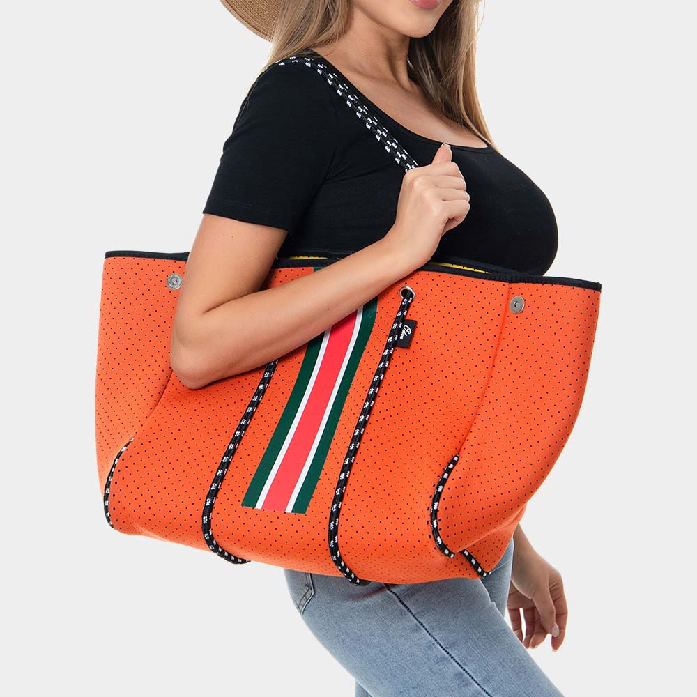 2PCS - Color Block Accented Solid Beach Tote Bag and Mini Pouch Bag Set