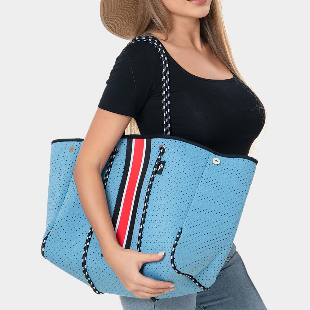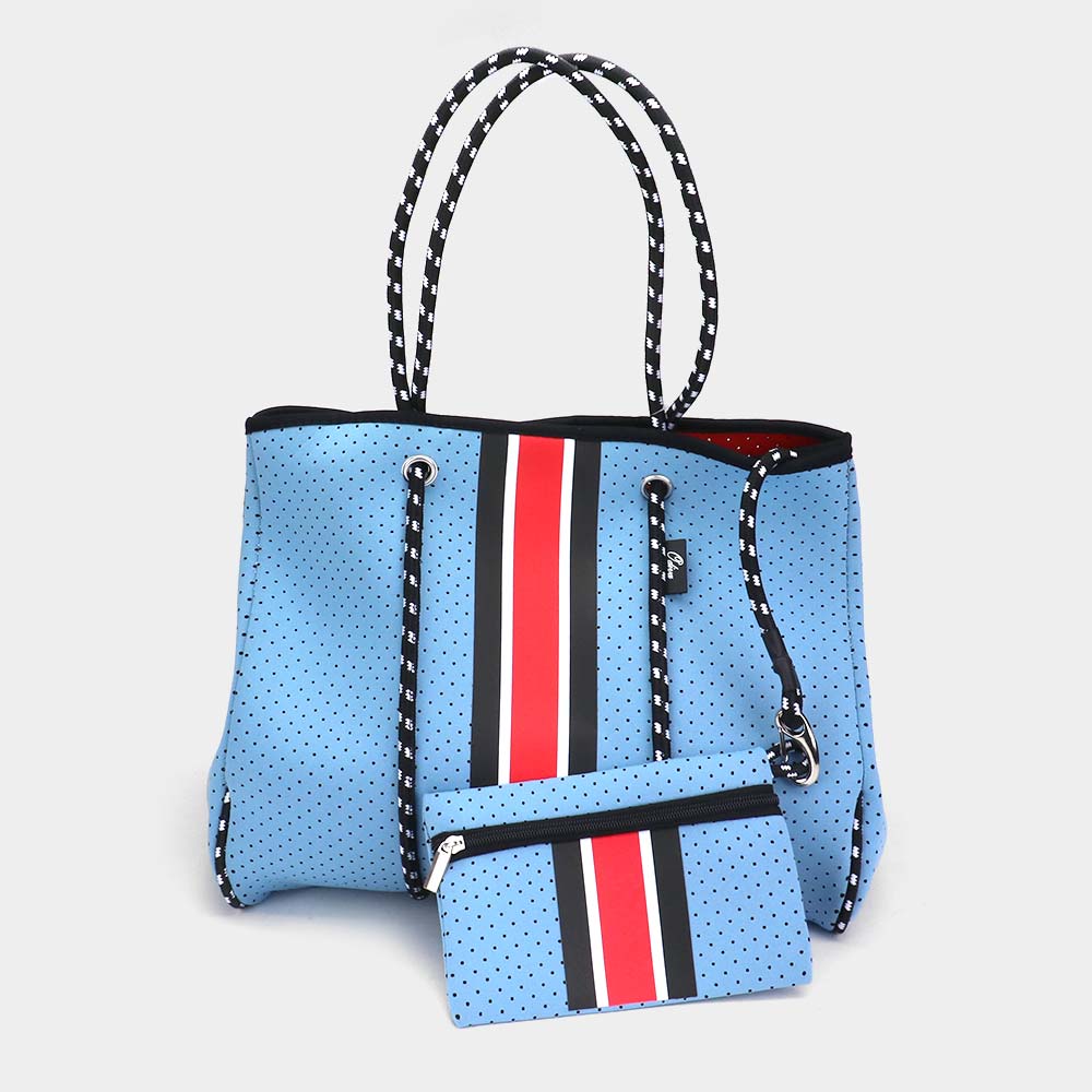 2PCS - Color Block Accented Solid Beach Tote Bag and Mini Pouch Bag Set