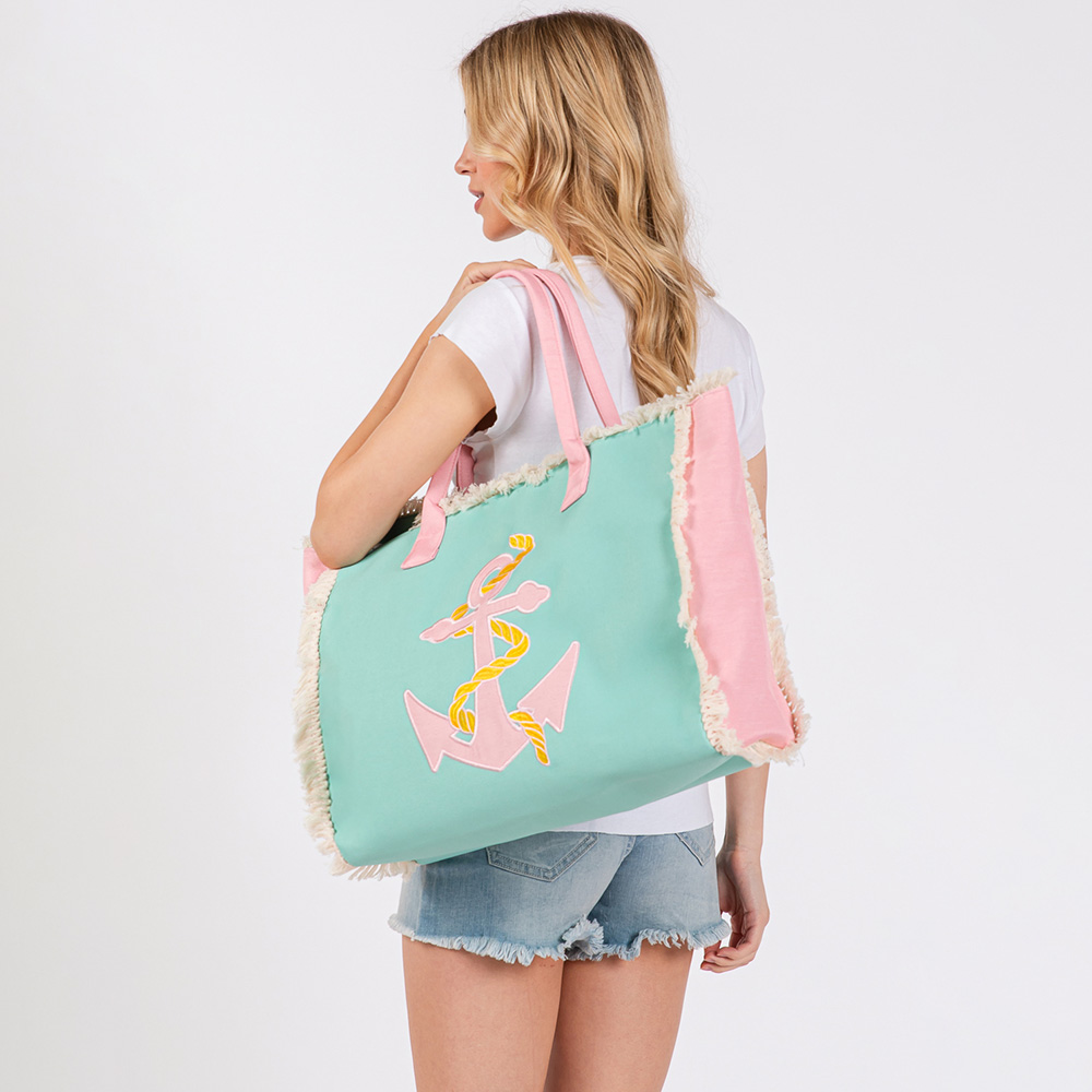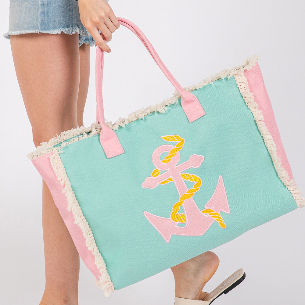 Anchor Patch Embroidered Fringe Tote Bag / Beach Bag