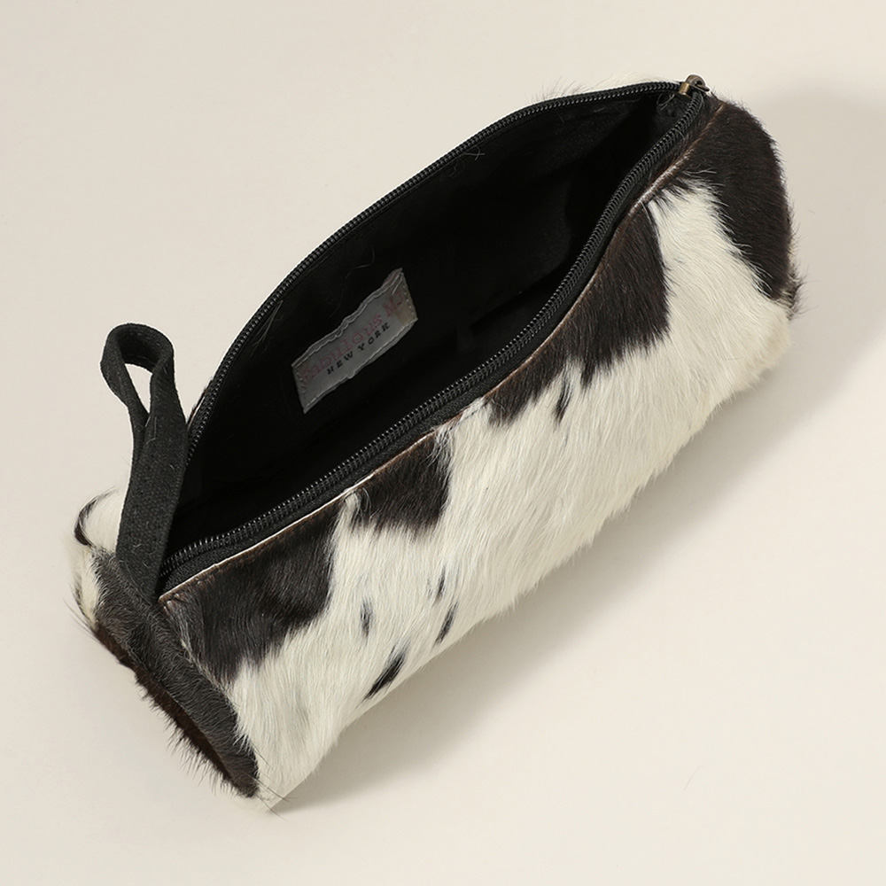 Animal Patterned Genuine Leather Cosmetic Pouch Bag