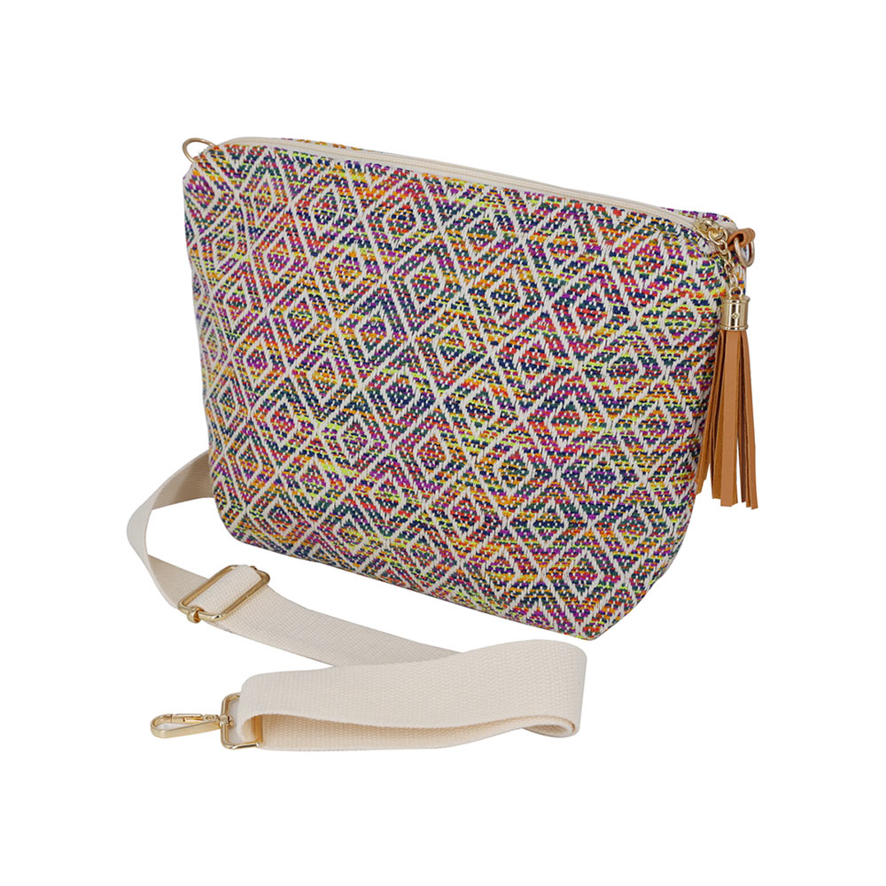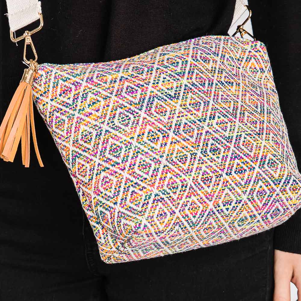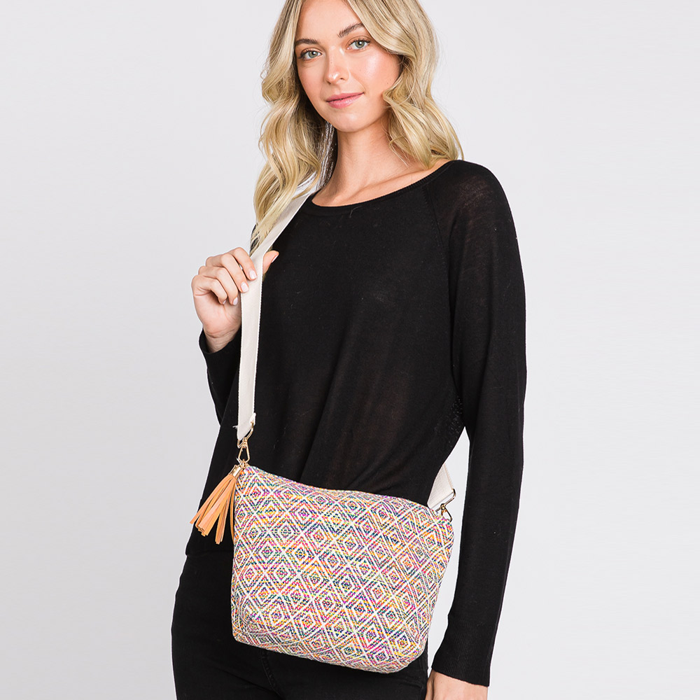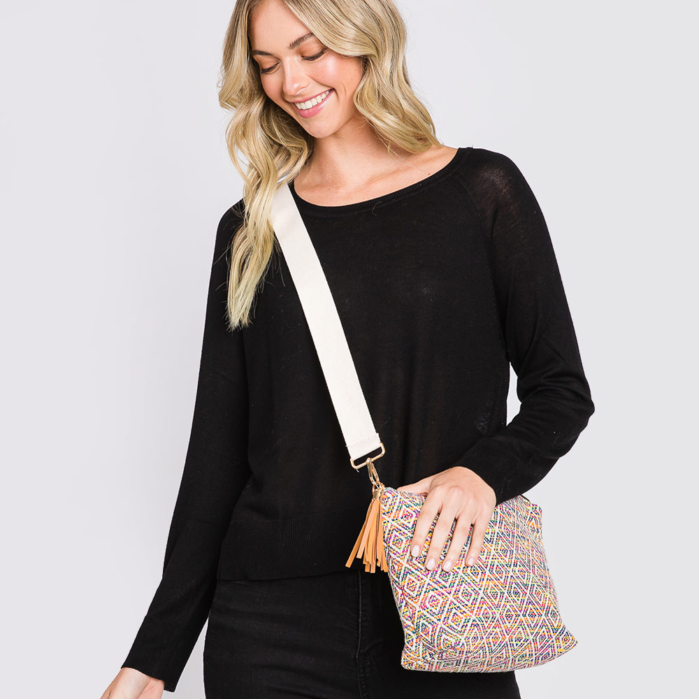 Raffia Seed Bead Wrapped Tassel Hoop Earrings