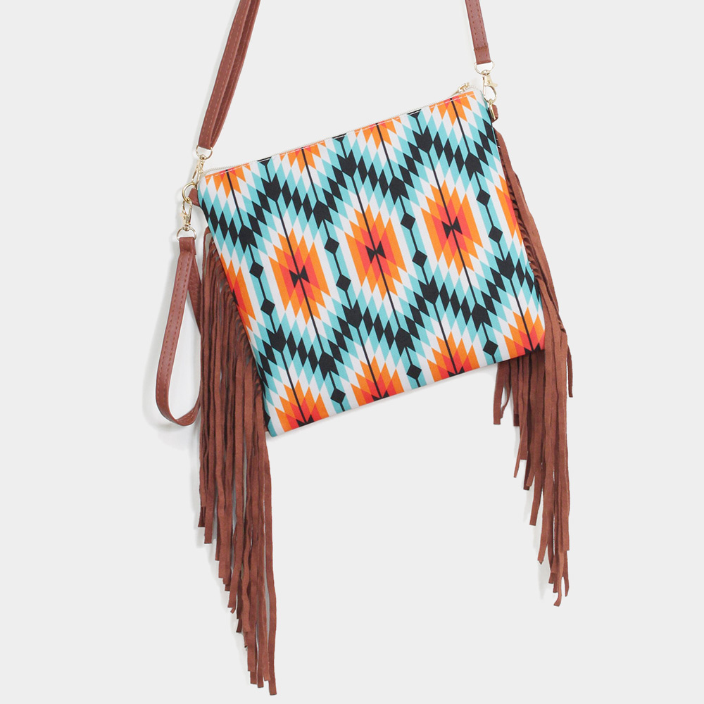 Aztec Print Tassel Wristlet Clutch / Crossbody Bag