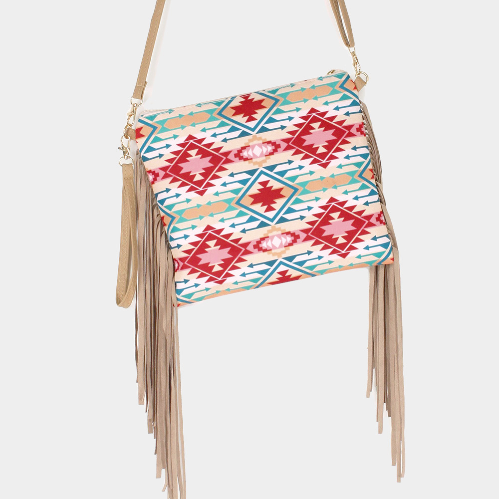 Aztec Print Tassel Wristlet Clutch / Crossbody Bag