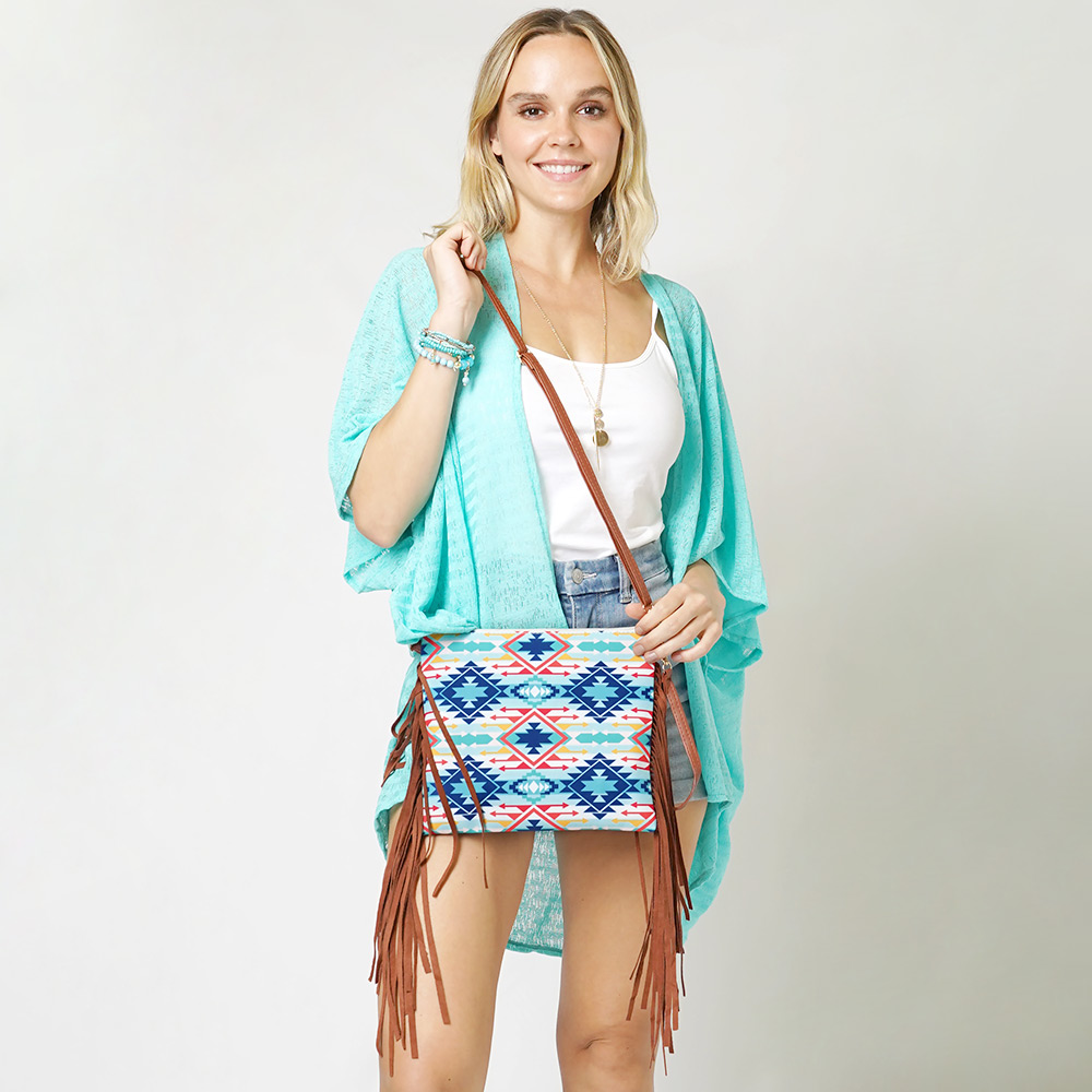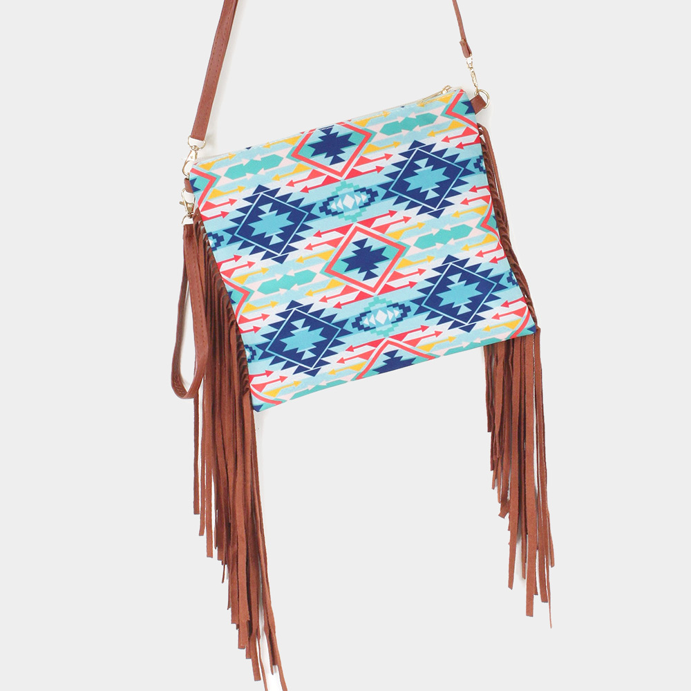 Aztec Print Tassel Wristlet Clutch / Crossbody Bag