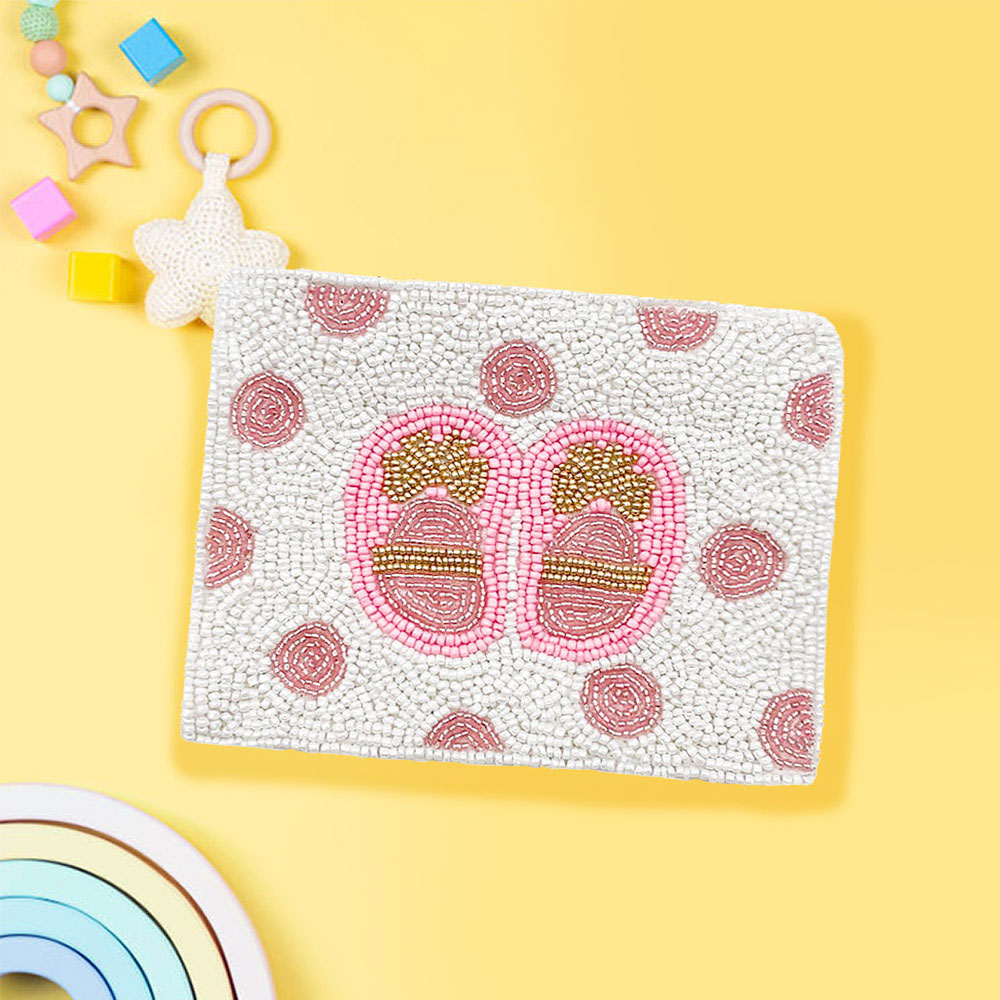 Baby Shoes Seed Beaded Mini Pouch Bag