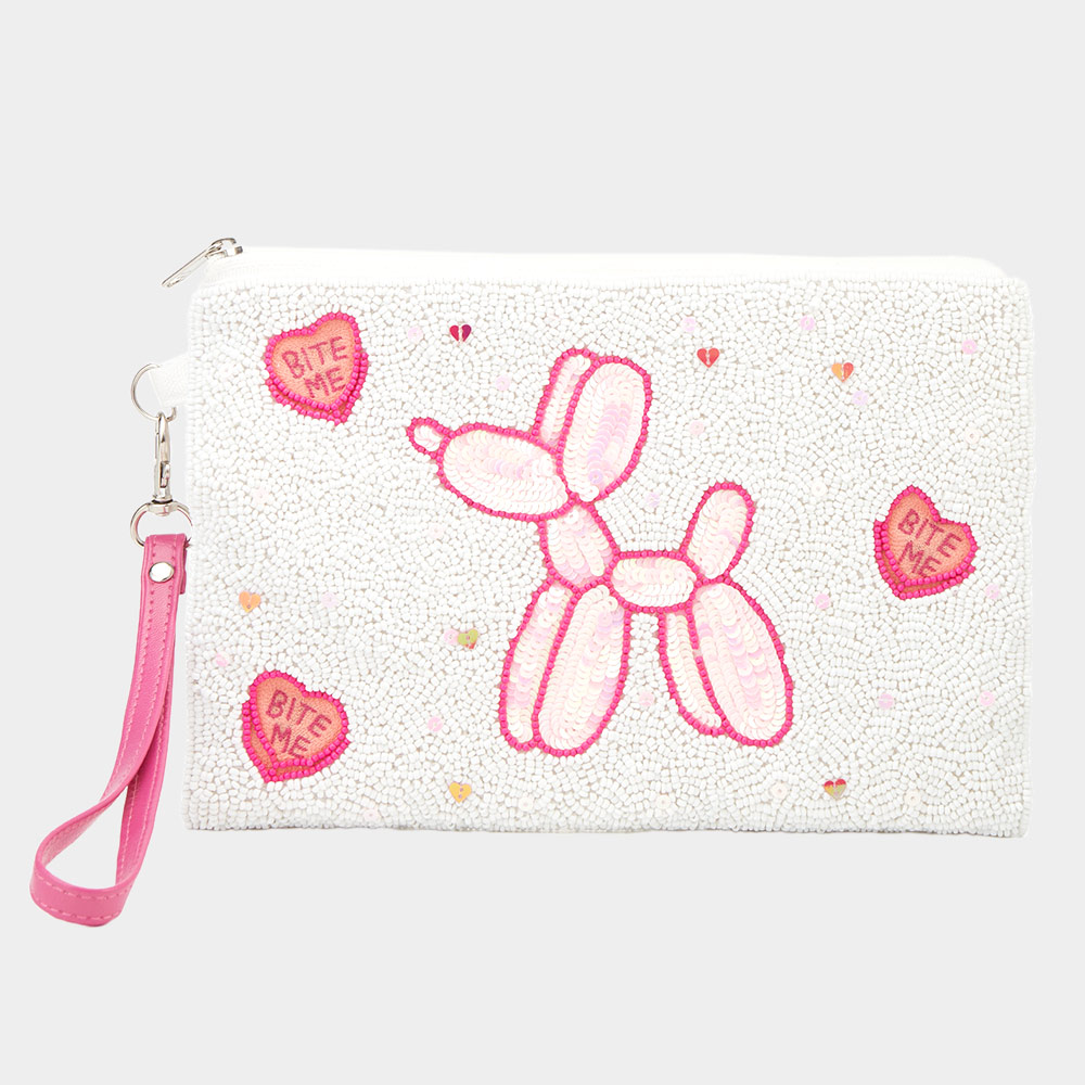 Balloon Dog Heart Beaded Wristlet Clutch Bag