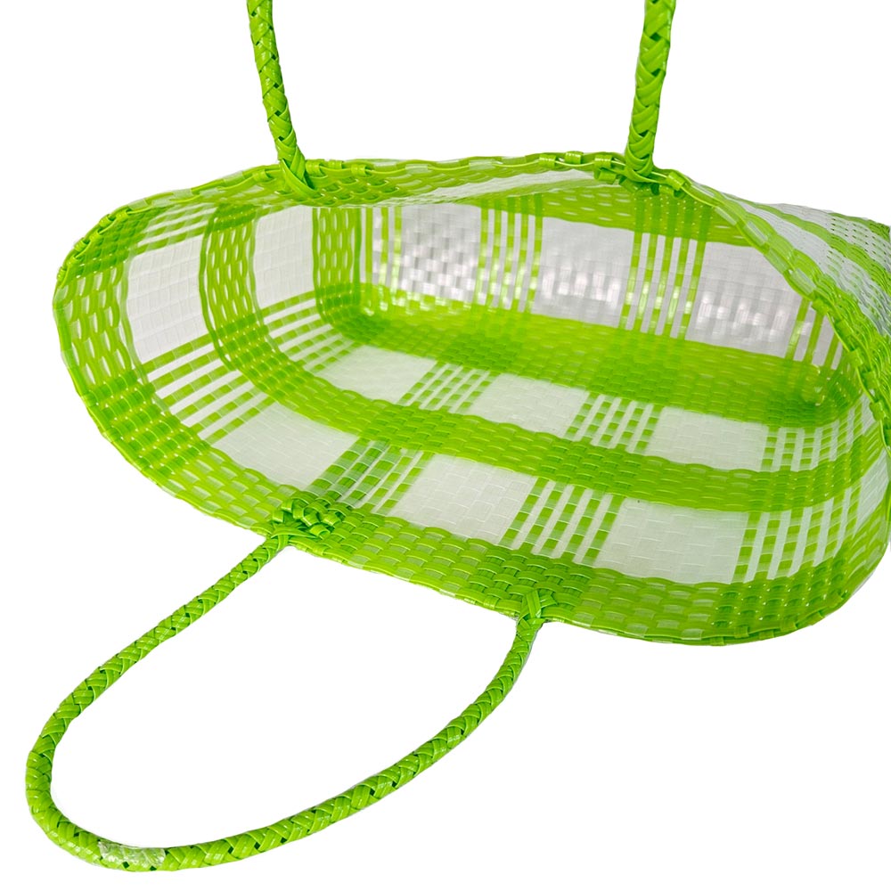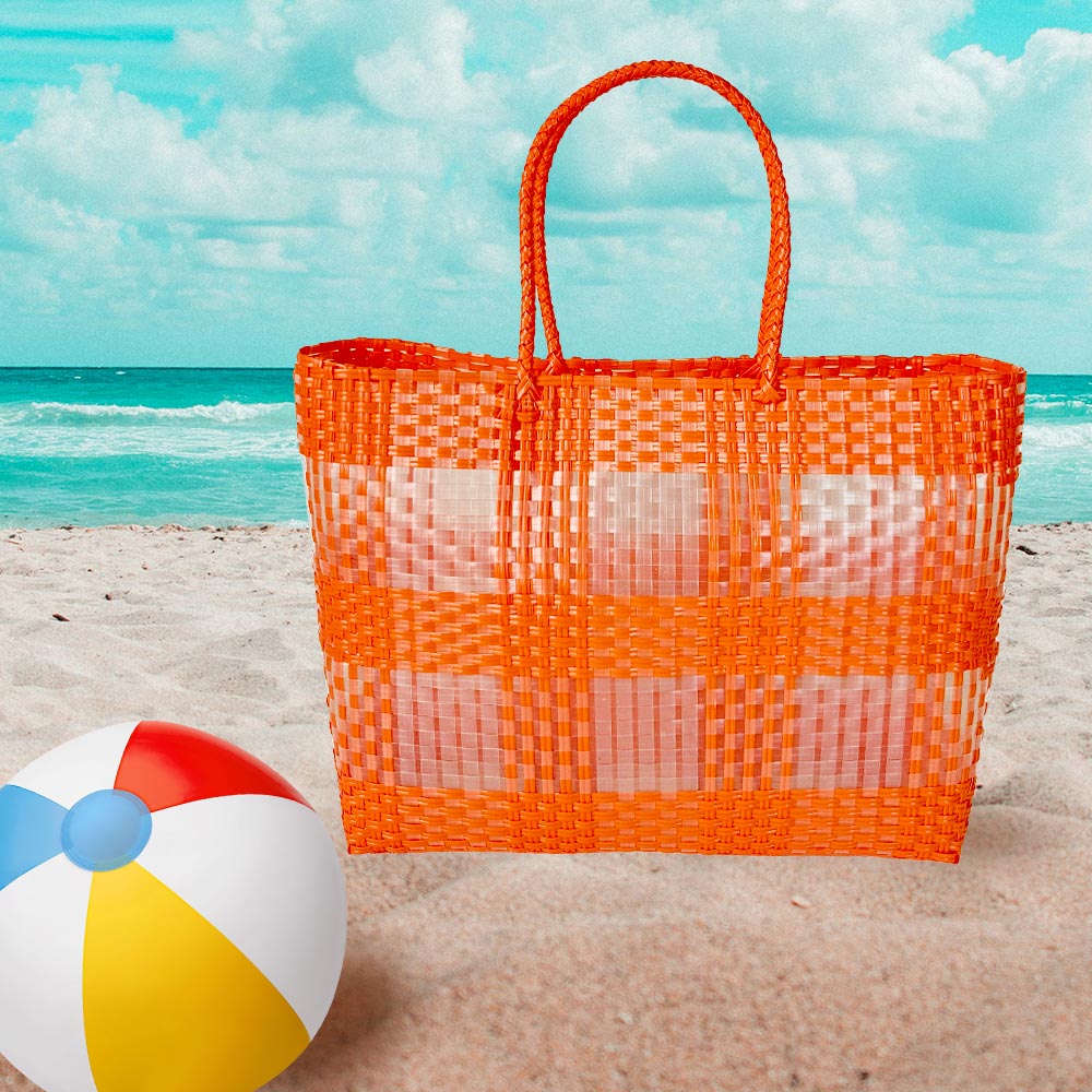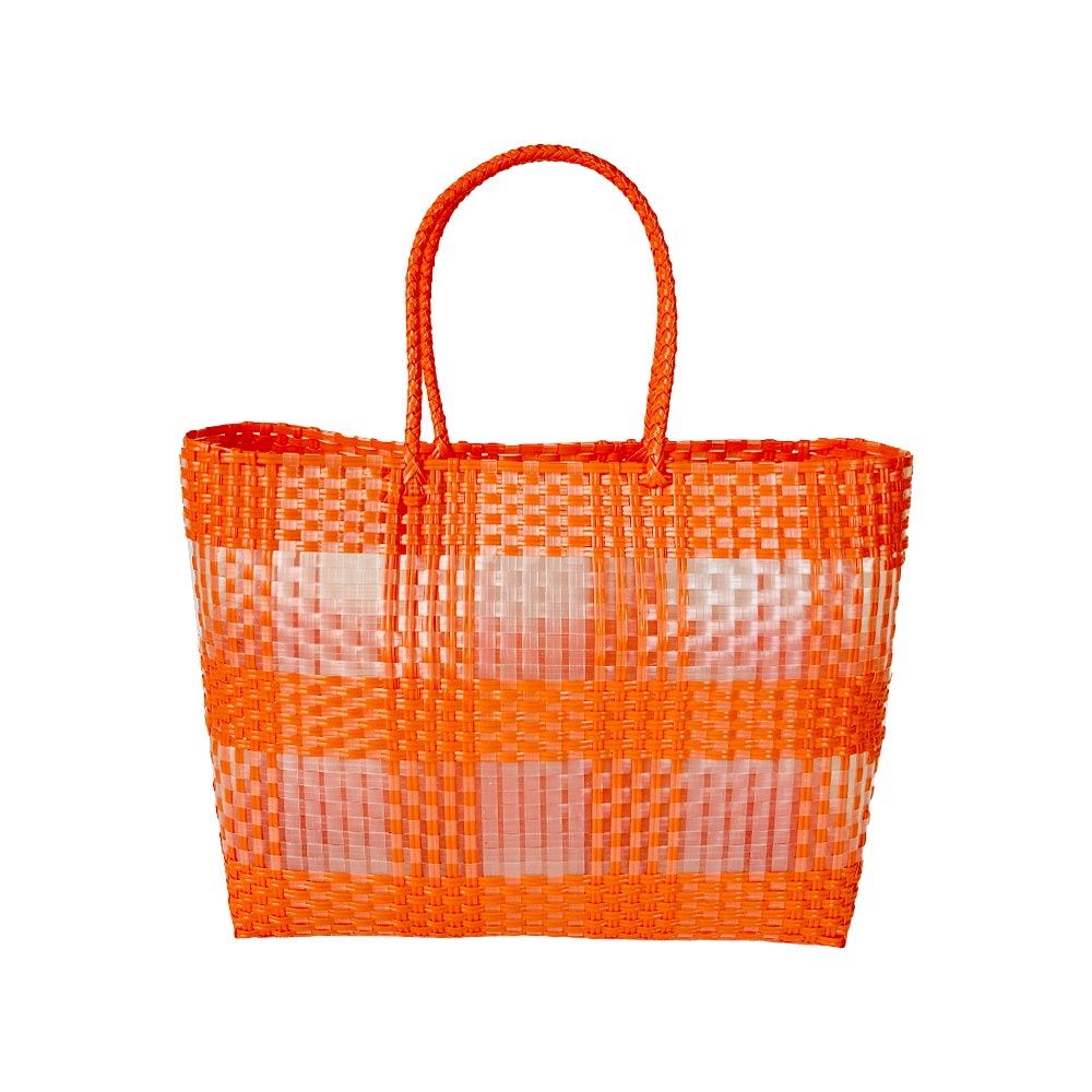 Woven Color Block Stripe Wooden Tassel Straw Tote Bag