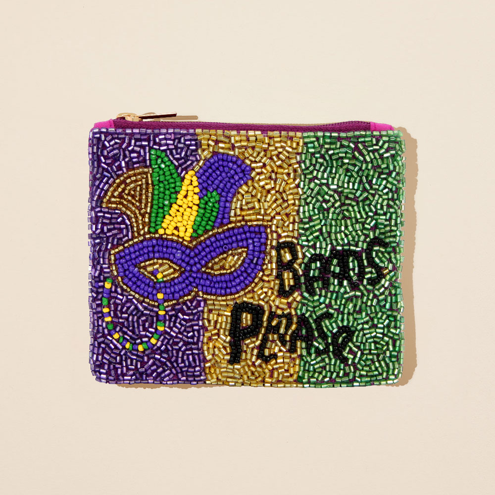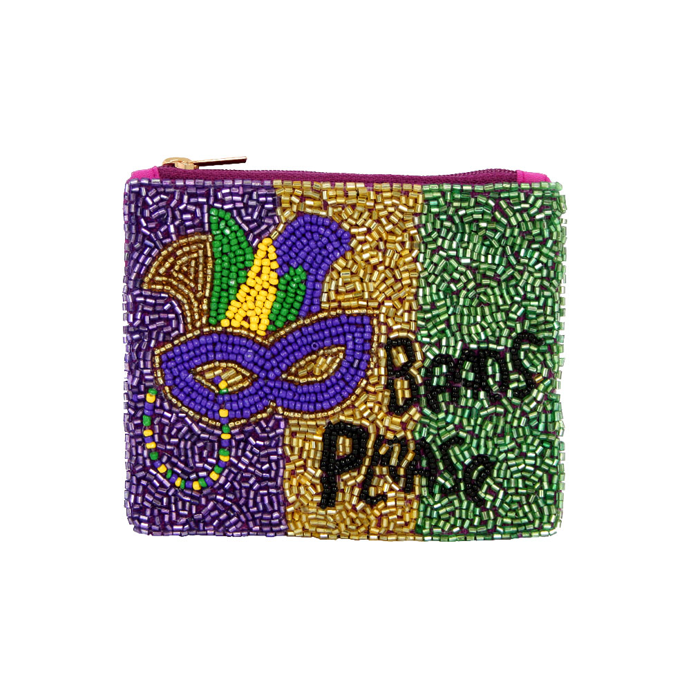 Beads Please Message Mardi Gras Mask Seed Beaded Mini Pouch Bag
