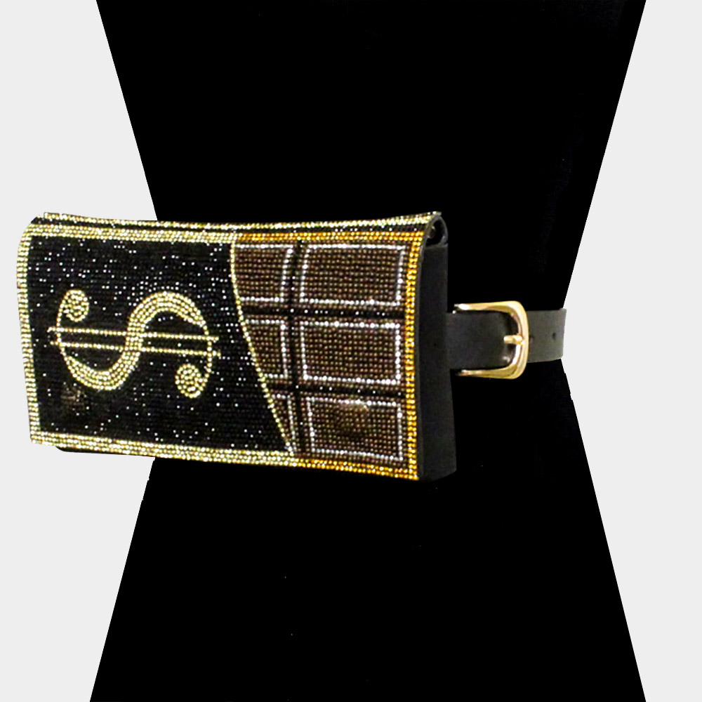 Bling Dollar Sign Chocolate Fanny Pack / Belt / Crossbody Bag
