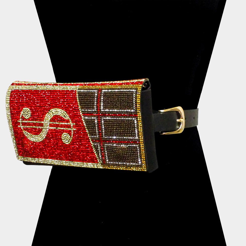 Bling Dollar Sign Chocolate Fanny Pack / Belt / Crossbody Bag