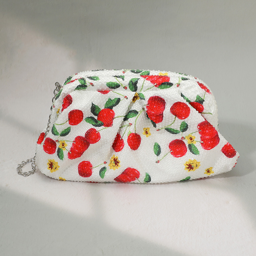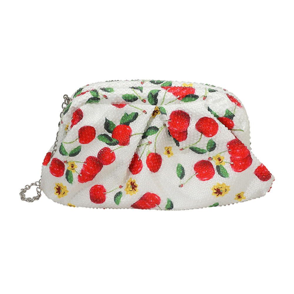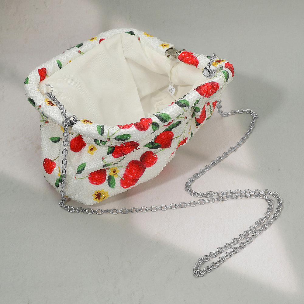 Details • Size : 8.5" X 5" X 2.5" • Strap Size : 47" L Detachable • Elegant floral clutch adorned with sparkling crystals and a sleek chain strap. Perfect for evening parties, weddings, and special occasions. A stylish accessory to carry essentials with charm.