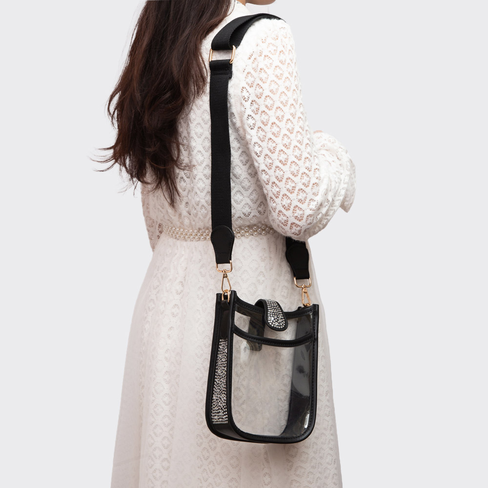 • Stay stylish and secure with this compact clear crossbody bag featuring an adjustable strap, snap tab closure, and structured design. Perfect for concerts, stadiums, and festivals where visibility is a must. A sleek, hands-free solution for modern on-the-go style.