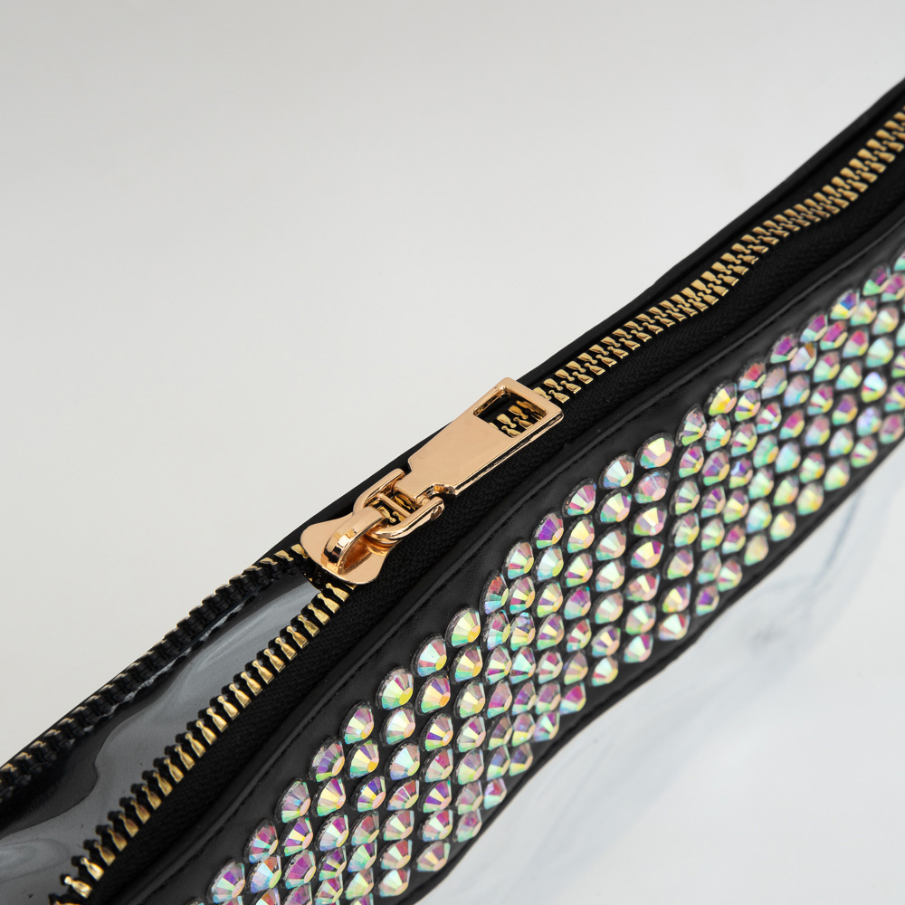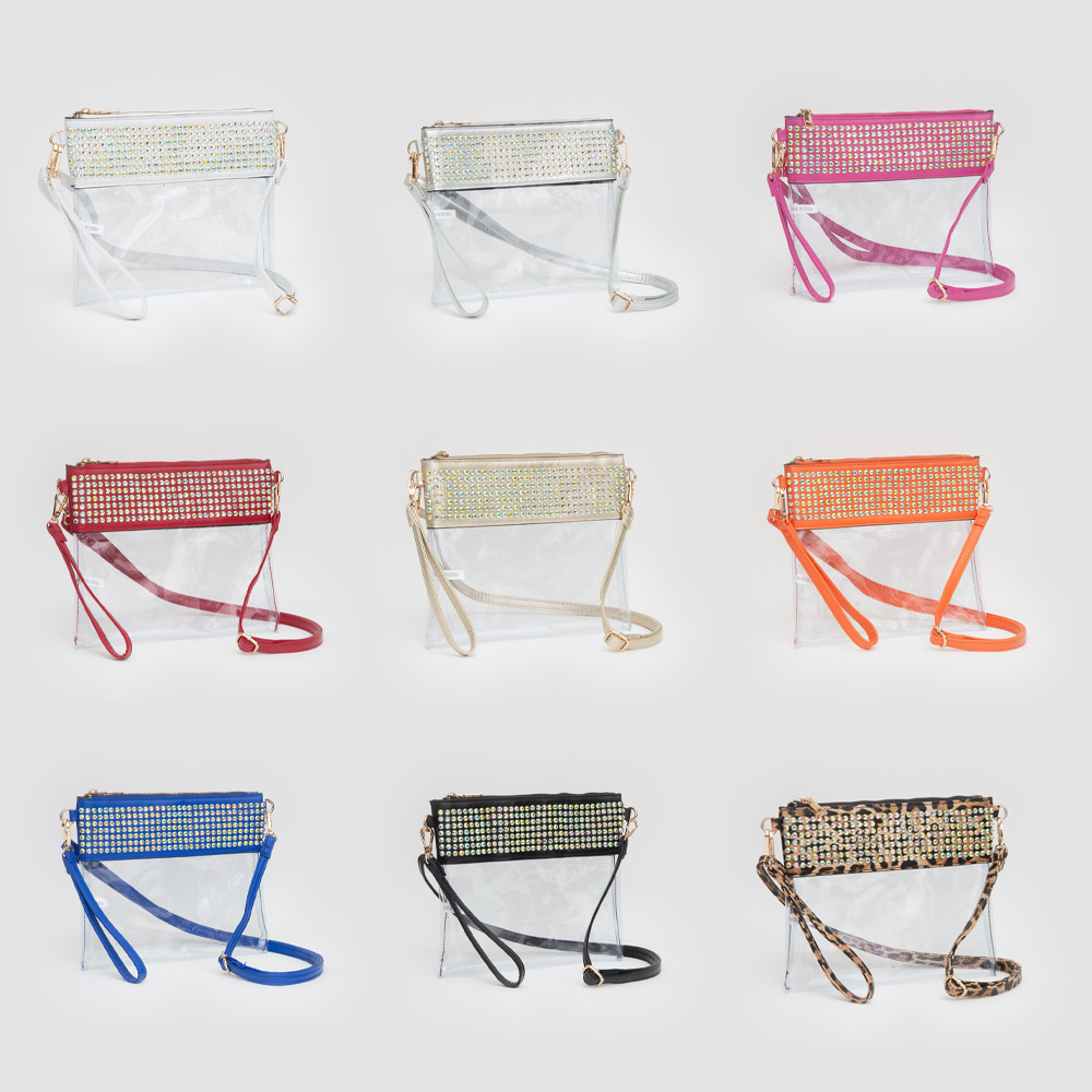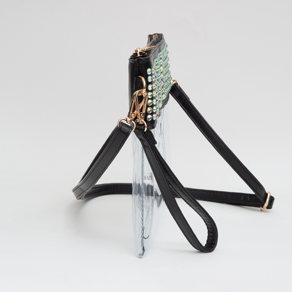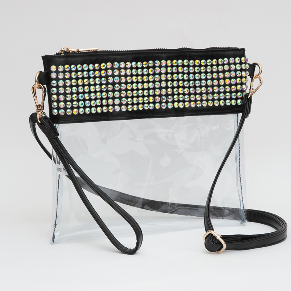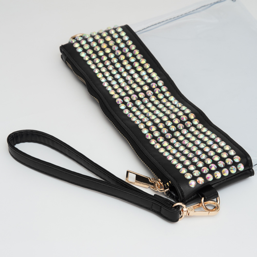 Bling Studded Flat Transparent Crossbody Bag with Wristlet