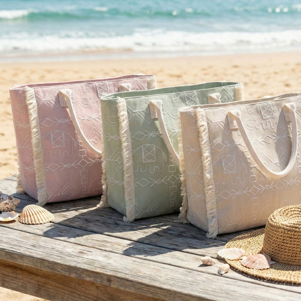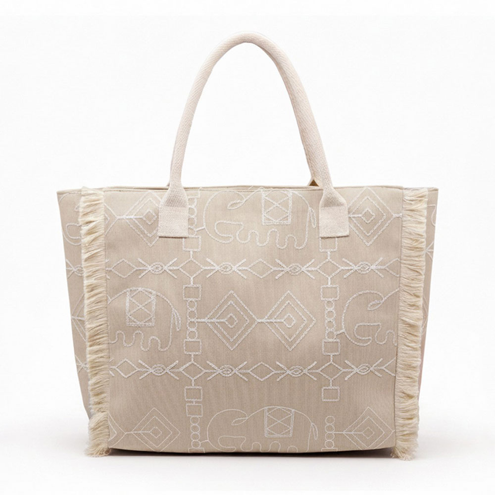 • Stylish everyday tote featuring a spacious interior, sturdy shoulder straps, and decorative fringe trim with an allover elephant patterned design. Ideal for shopping, travel, beach days, or casual outings, offering versatile storage and easy carry appeal for boutique and lifestyle customers.