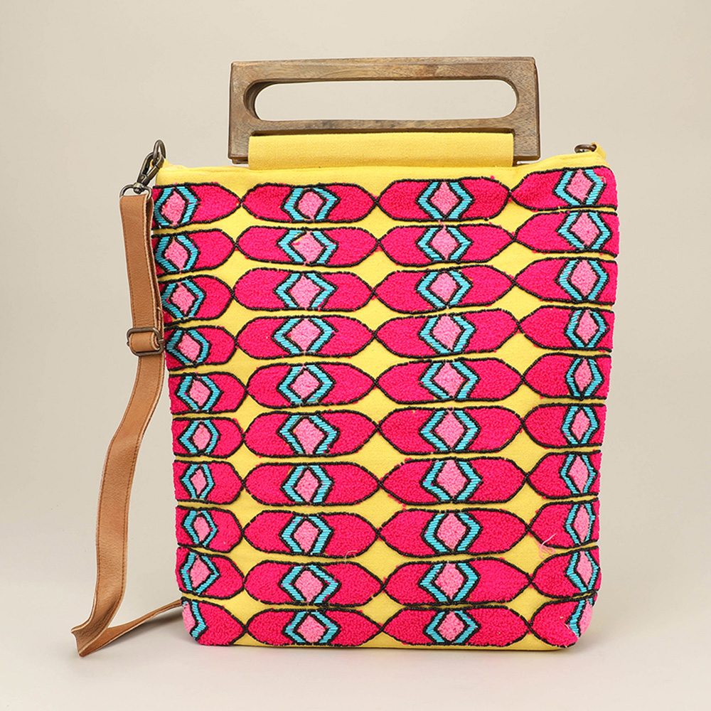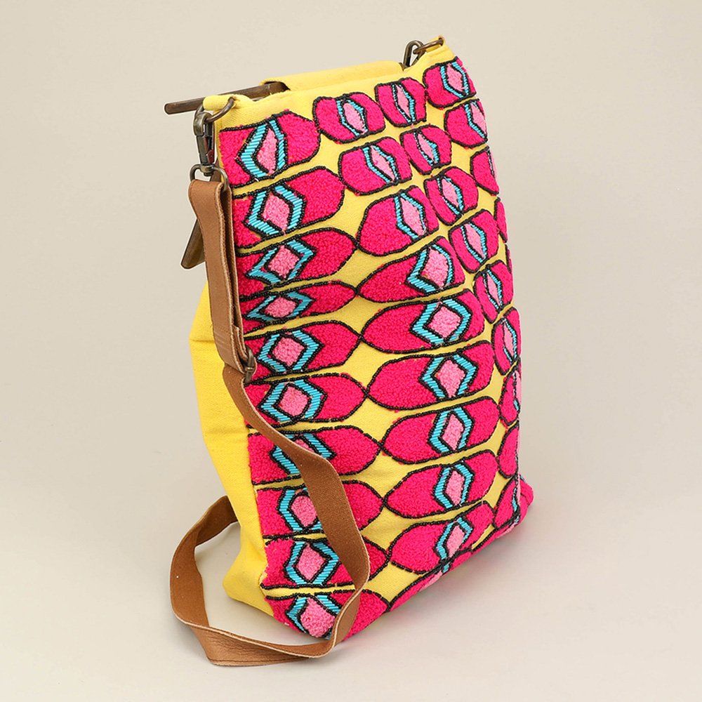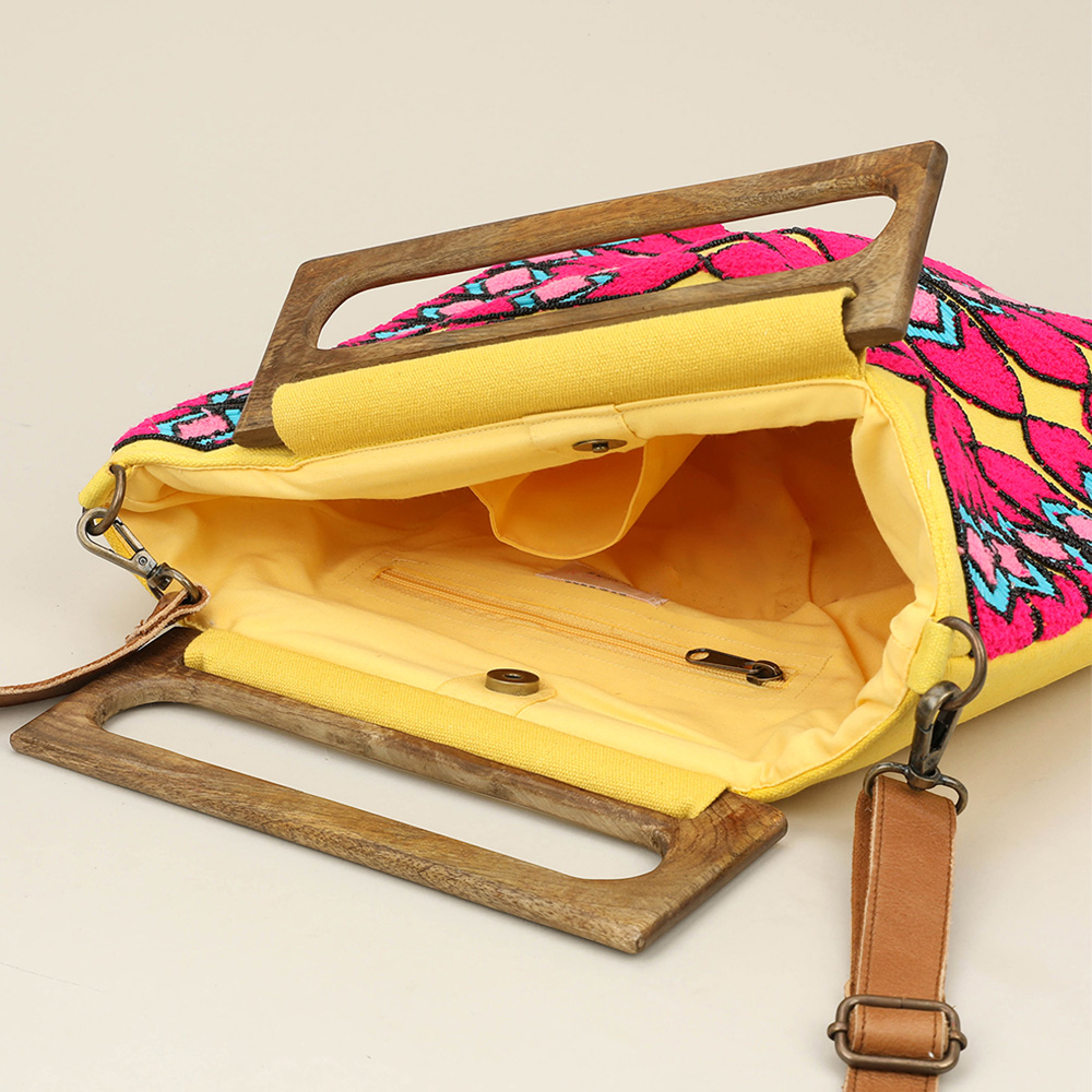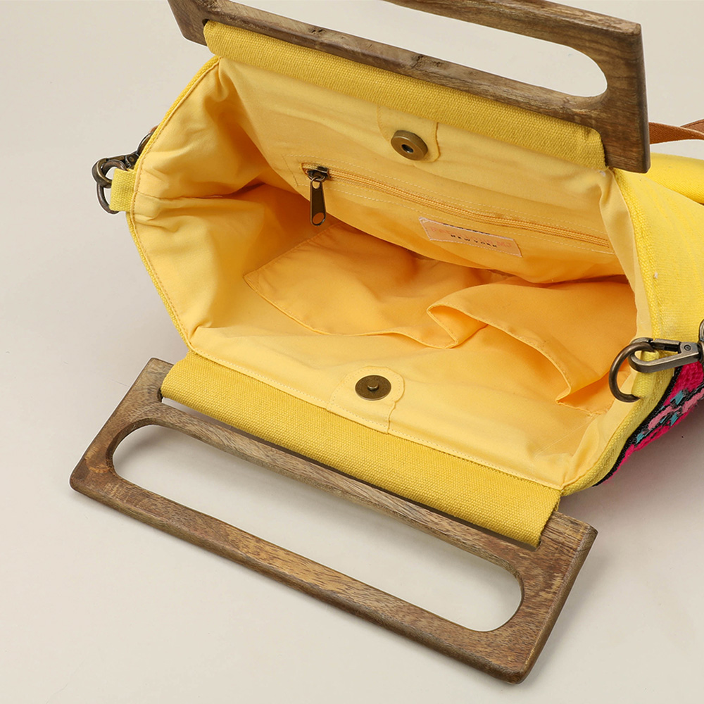 Details • Bag Size : 15" X 19" • Strap Size : 52" L / Adjustable, Detachable • One Inside Zipper Pocket • Two Inside Slip Pockets • Magnetic Closure • Spacious interior to fit daily essentials • Made In India