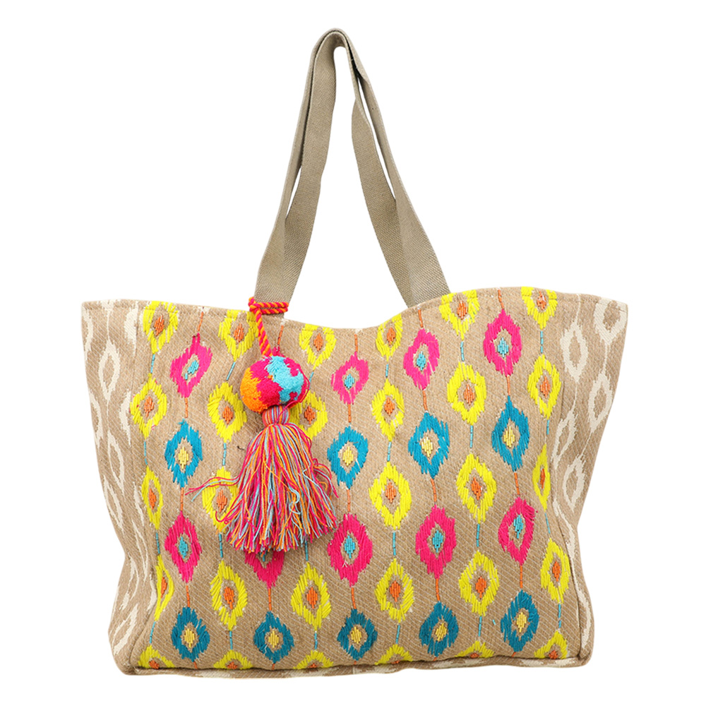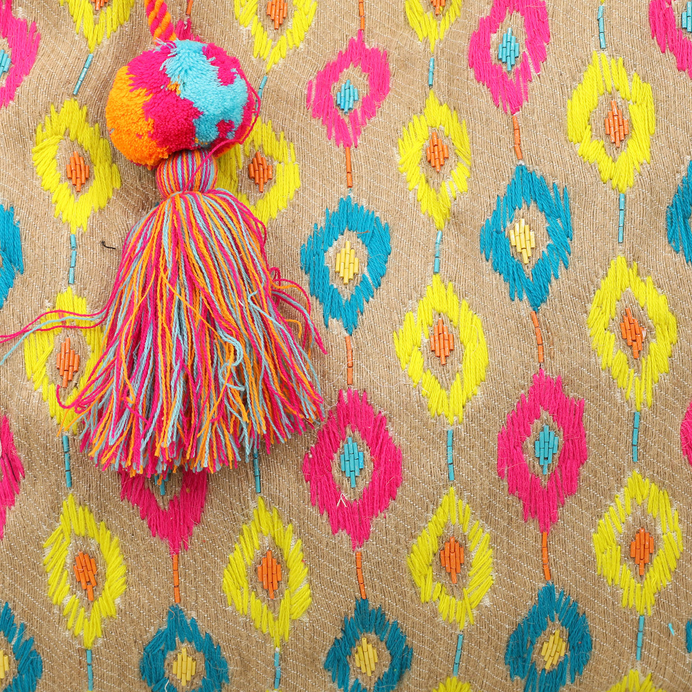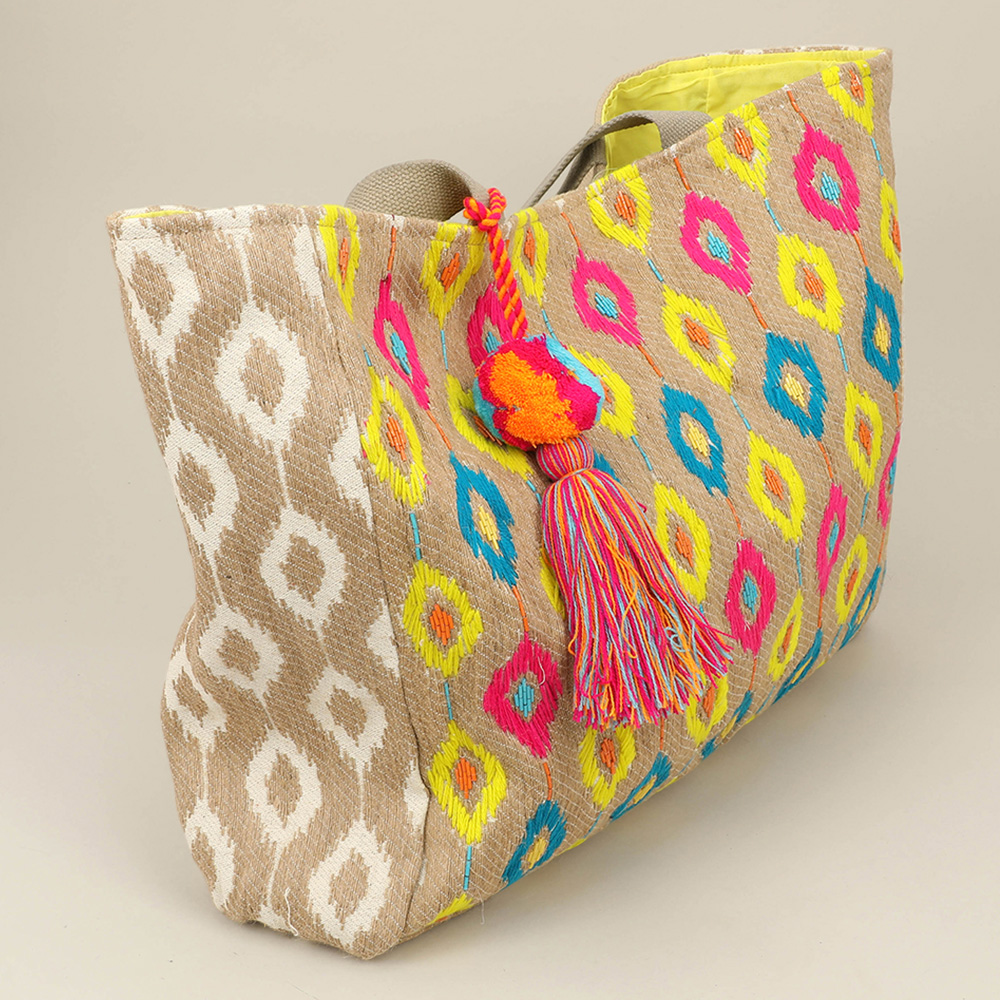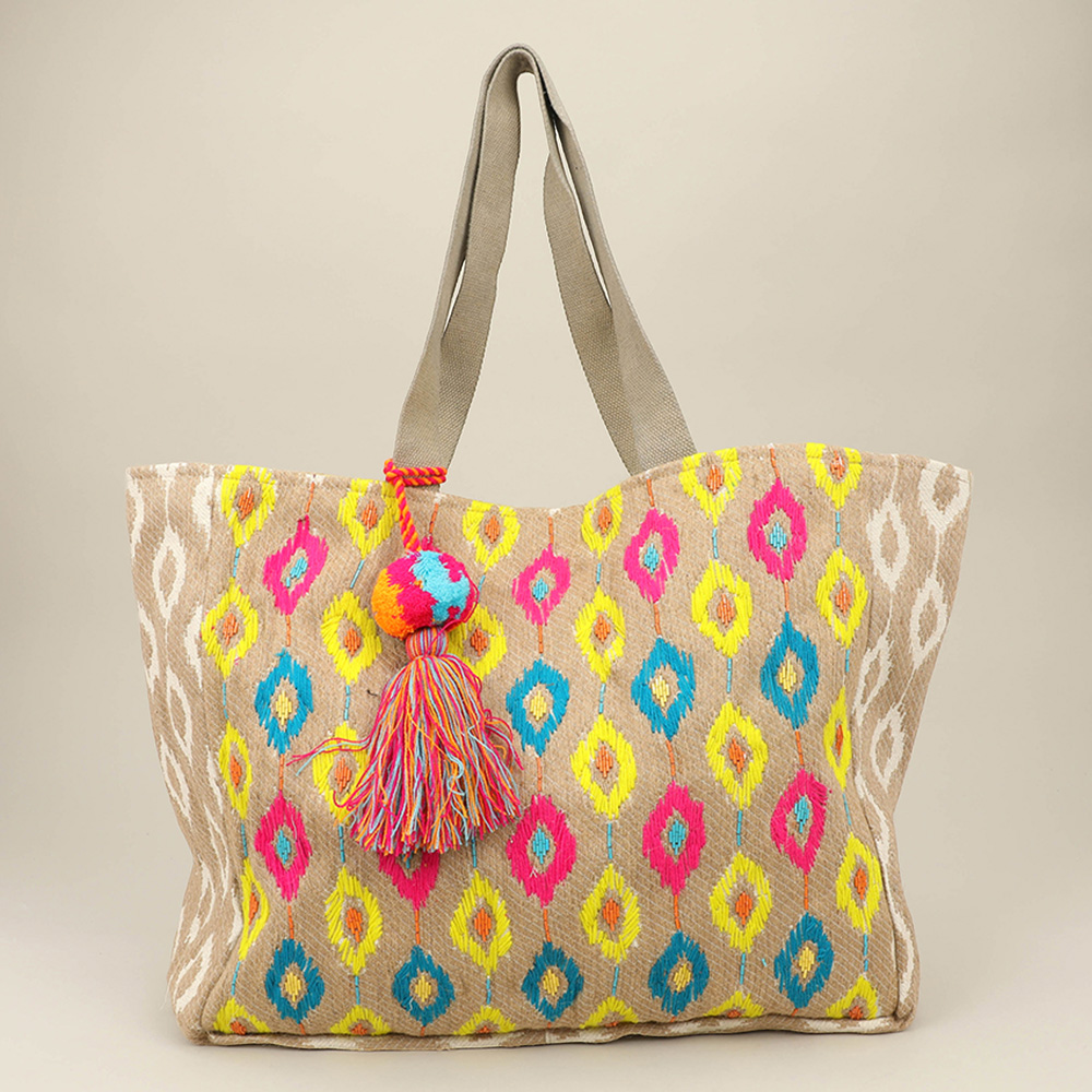 Boho Patterned Pom Pom Tassel Shoulder Bag