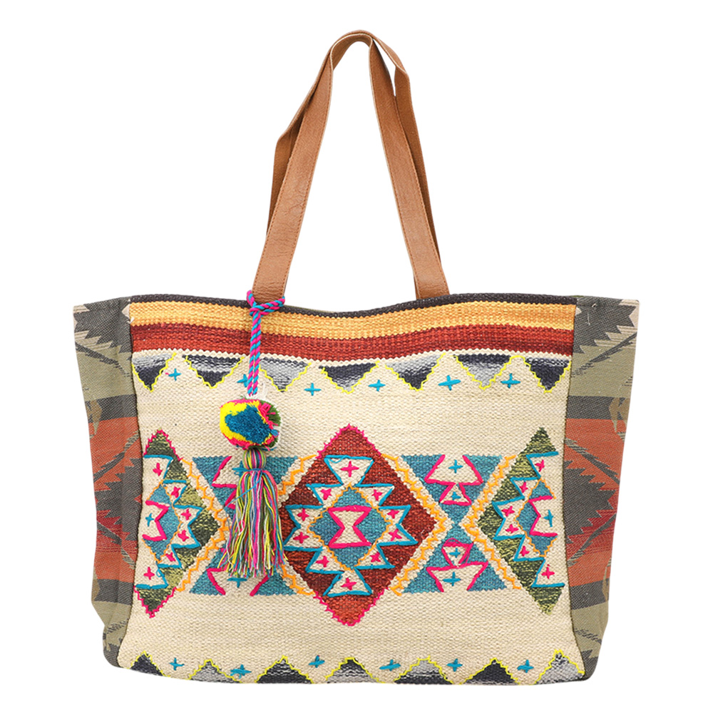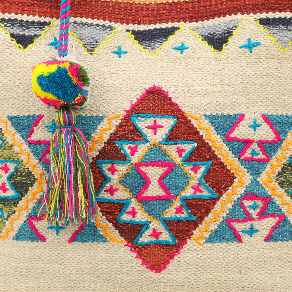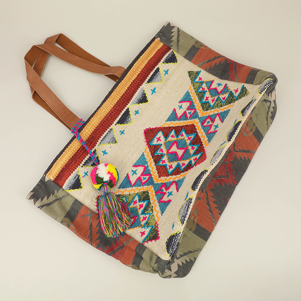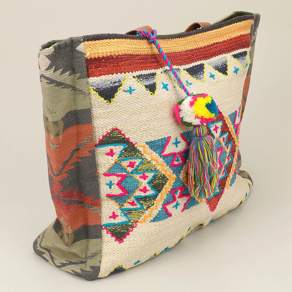 Boho Patterned Pom Pom Tassel Shoulder Bag