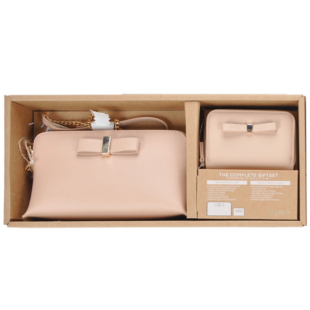 Bow Pointed Faux Leather Clutch / Crossbody Bag and Wallet Set